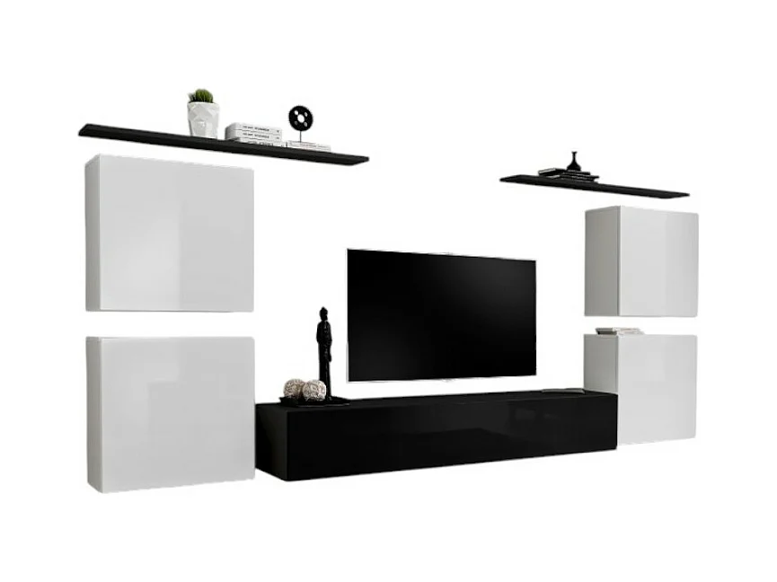 Conjunto de móveis para sala de estar SWITCH VII design, nas cores preto e branco brilhante.