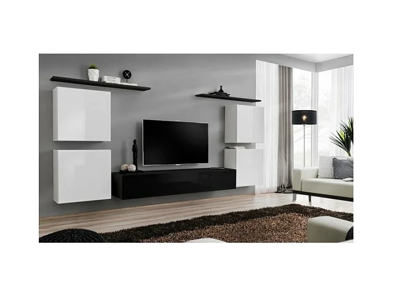 Conjunto de móveis para sala de estar SWITCH IV design, cores preto e branco brilhante.