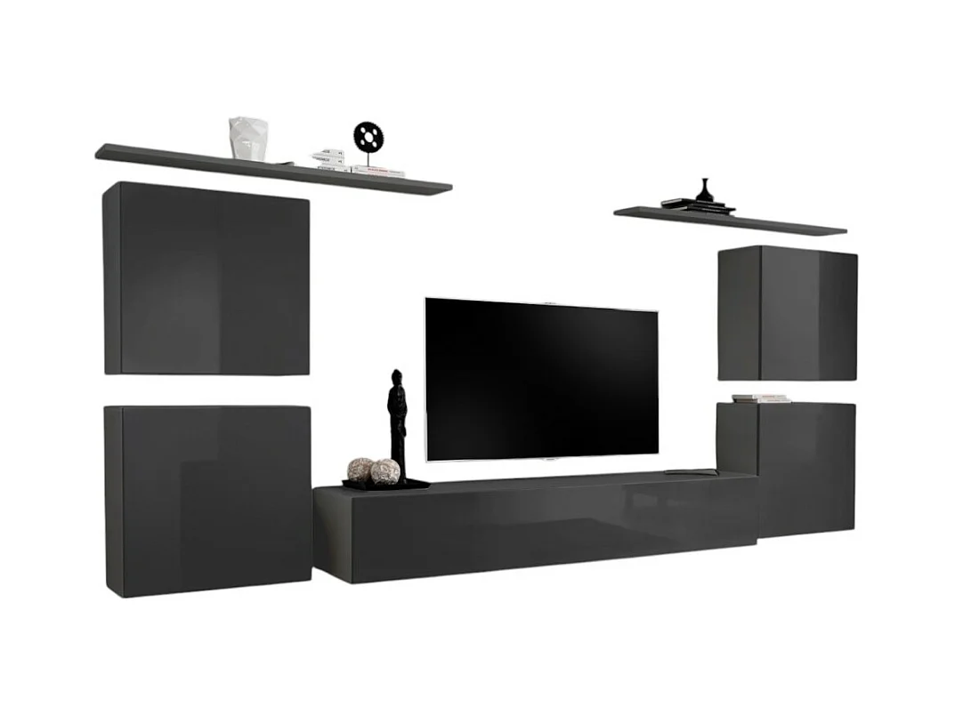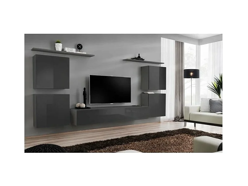 Conjunto de móveis de sala de estar mural SWITCH VII design, cor cinza brilhante.