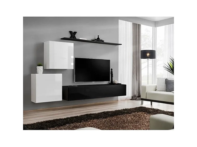 Conjunto de móveis para sala de estar SWITCH VII design, nas cores preto e branco brilhante.