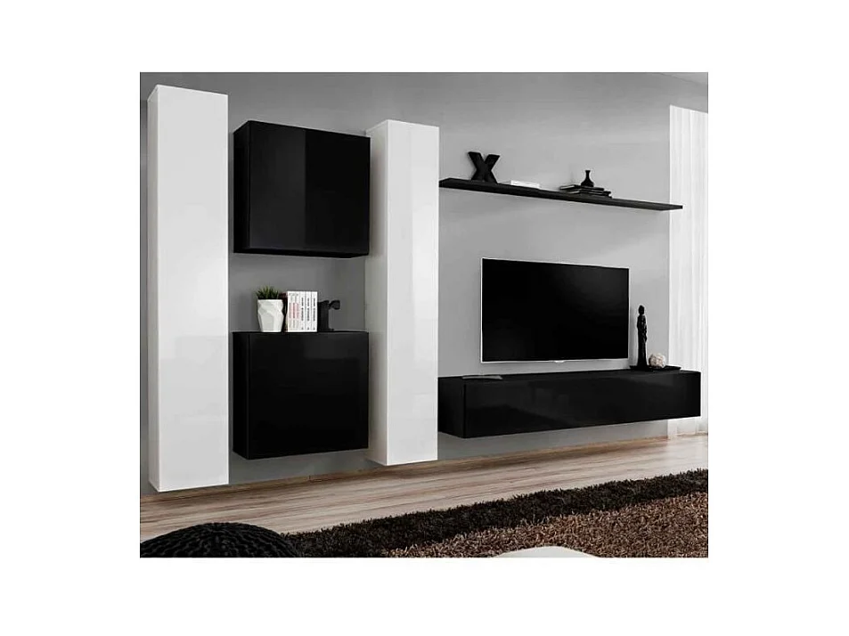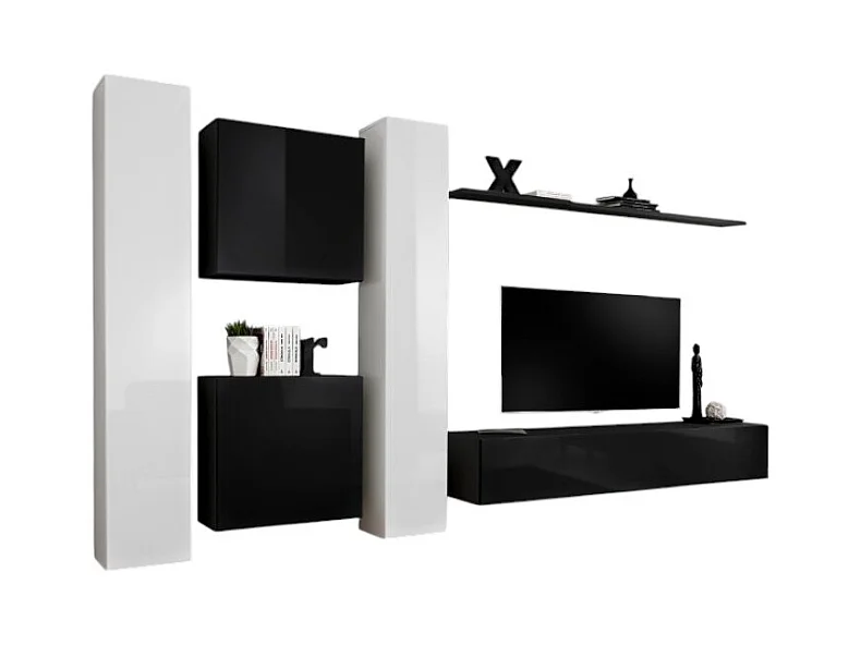 Conjunto de móveis para sala de estar SWITCH VI design, cores preto e branco brilhante.