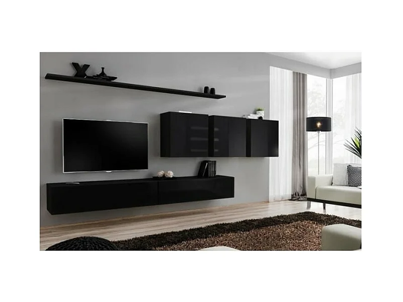 Conjunto de móveis para sala de estar SWITCH IV, design moderno, na cor preto brilhante.