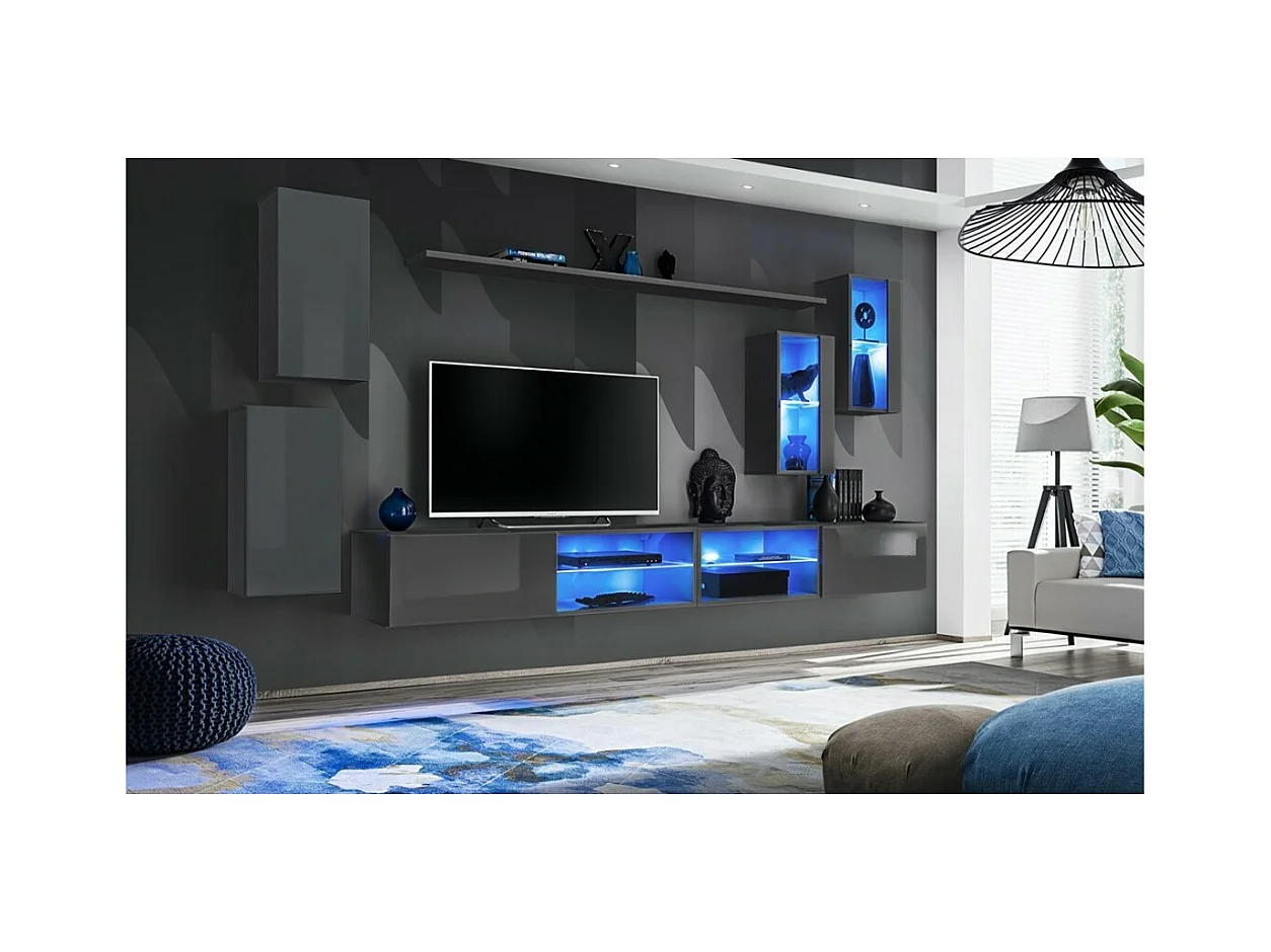 Conjunto de móveis de parede para sala de estar SWITCH XVIII, design moderno, na cor cinza brilhante.