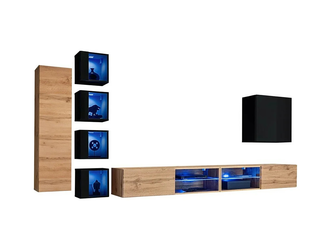 Conjunto de móveis para sala SWITCH XXVI, design, cor carvalho e preto.
