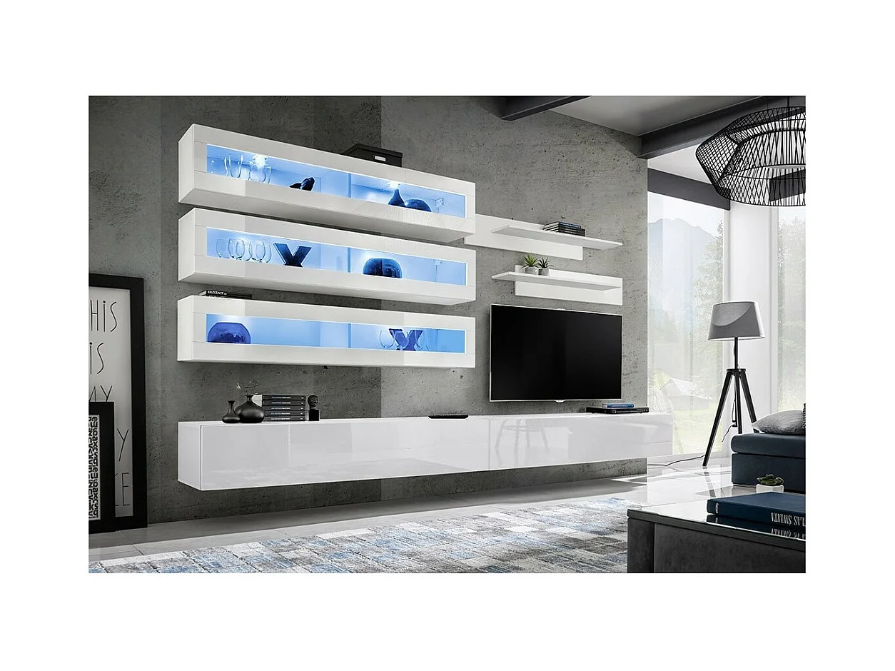 Conjunto de móveis suspensos com LEDs da coleção FLY J3. Cor branca.