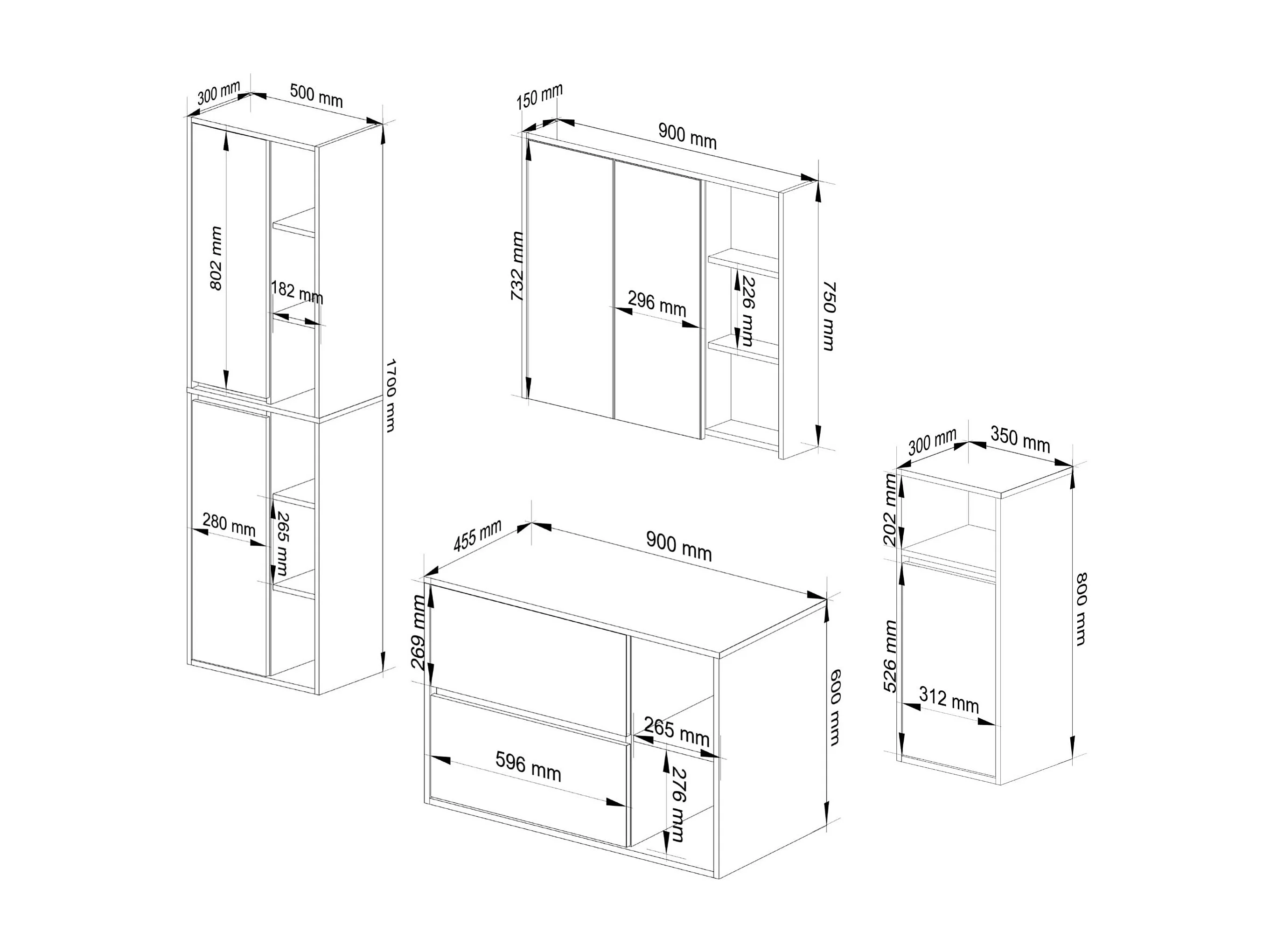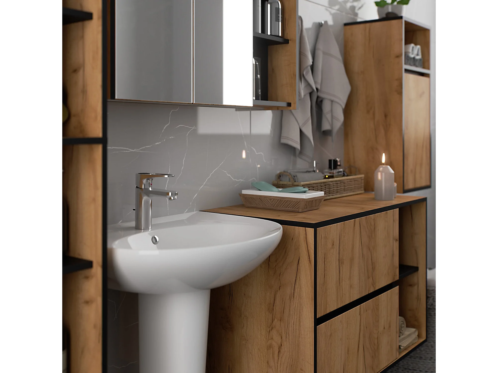 Conjunto de Móveis Suspensos para Banheiro VAMI Carvalho Craft/Preto