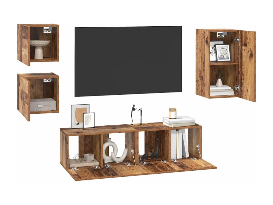 Conjunto de móvel de TV 4 peças Madeira antiga 30.5 x 30 x 90 cm