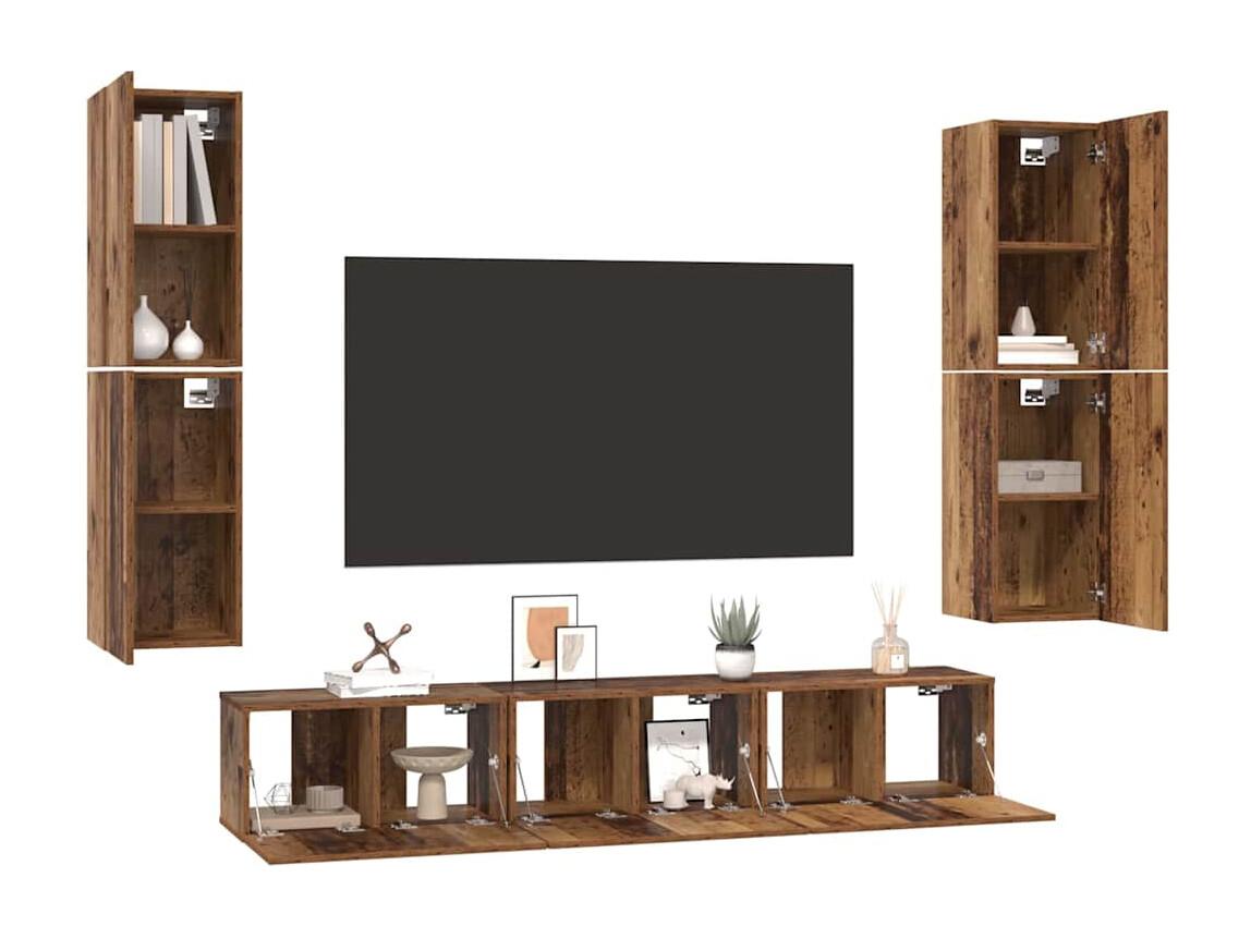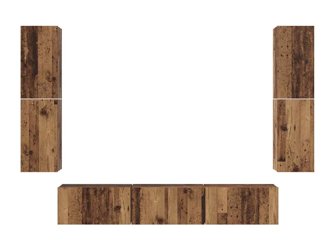 Conjunto de móvel de TV 6 peças Madeira antiga 30.5 x 30 x 90 cm