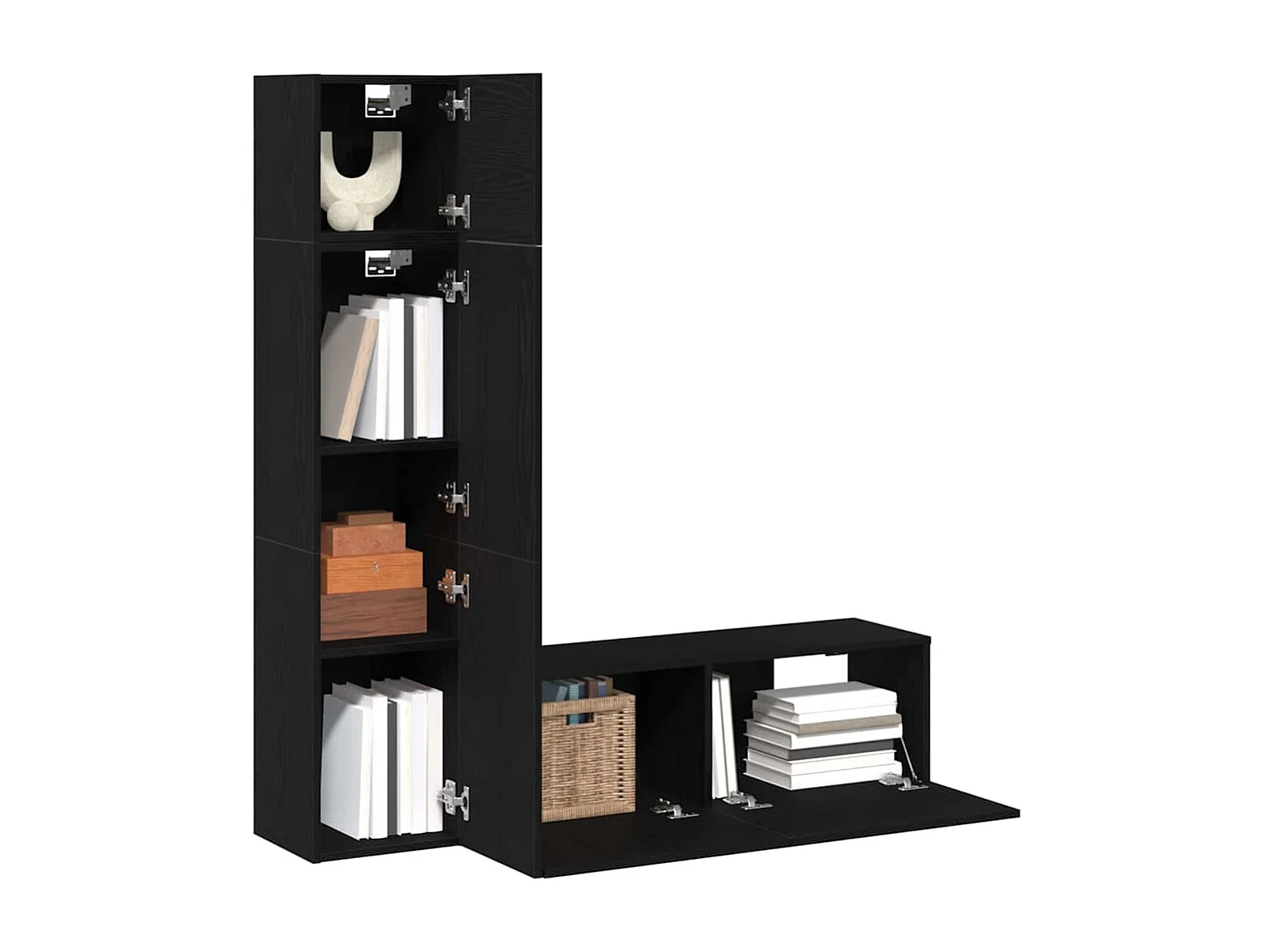 Conjunto de móvel de TV Montado na parede 4 peças Carvalho preto
