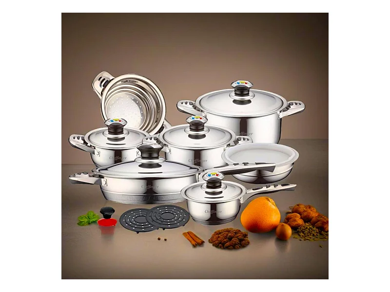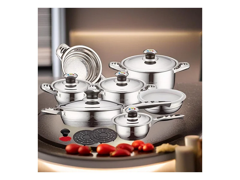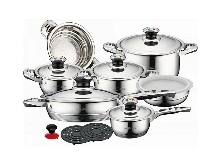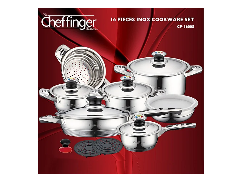 Conjunto de panelas em aço inoxidável Cheffinger CF-1600S - 16 peças