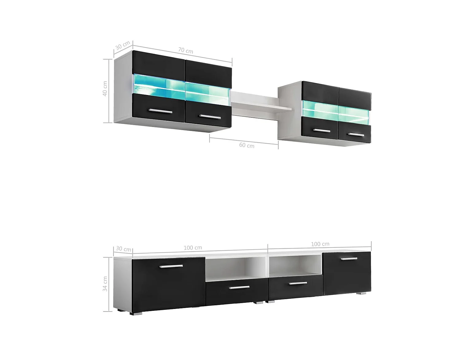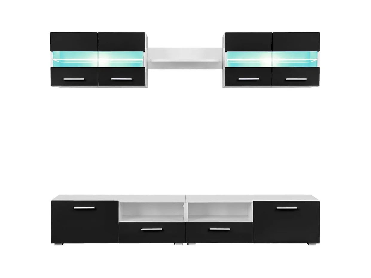 Conjunto de parede para 5 ambientes com luzes LED preto brilhante 02_0025383
