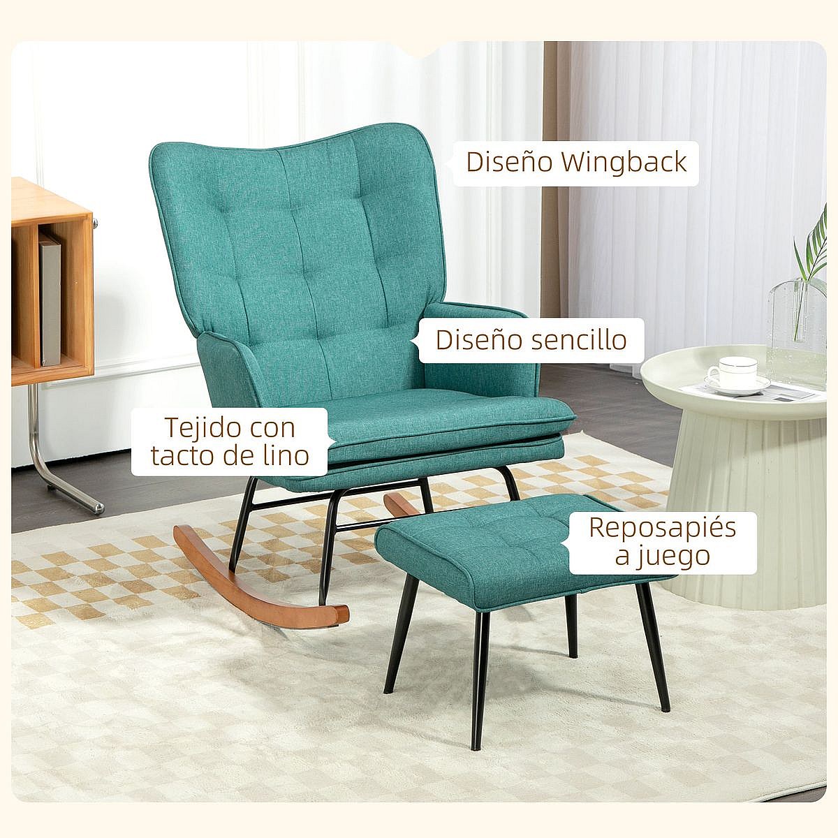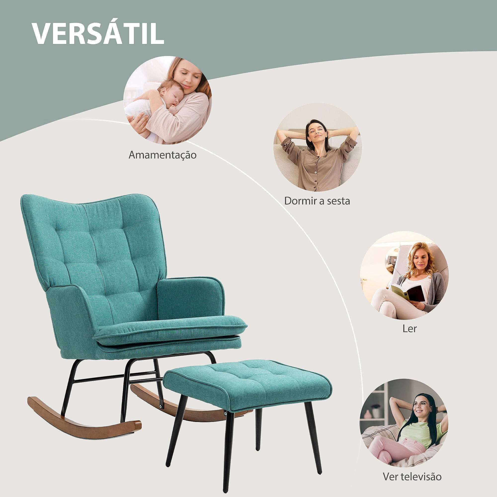 Conjunto de Poltrona Baloiço Helsinki com Apoio para os Pés e Almofada Acolchoada - Verde