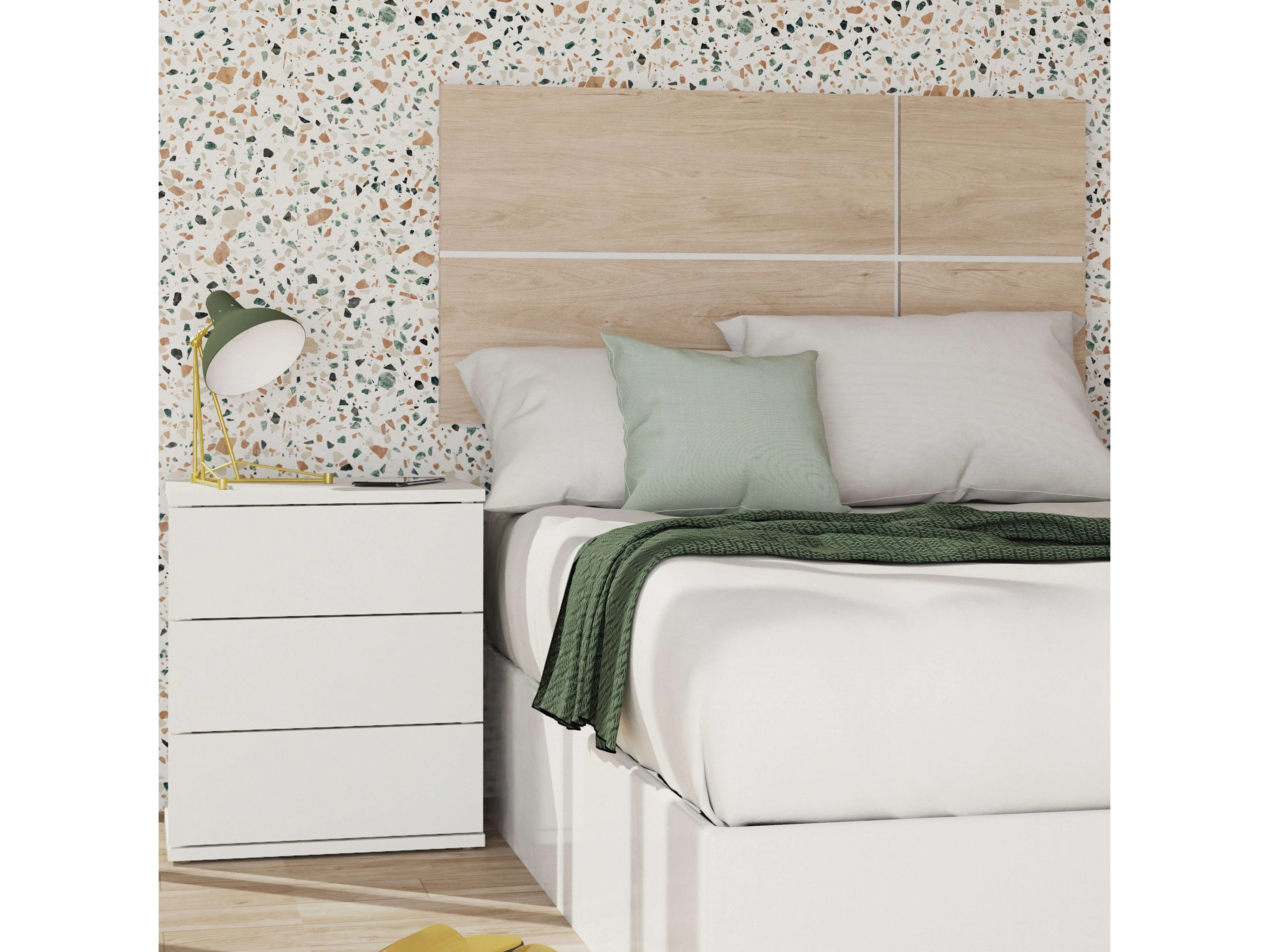 Cabeceira de cama de casal Arles estilo nórdico branco Albo e carvalho 160 cm
