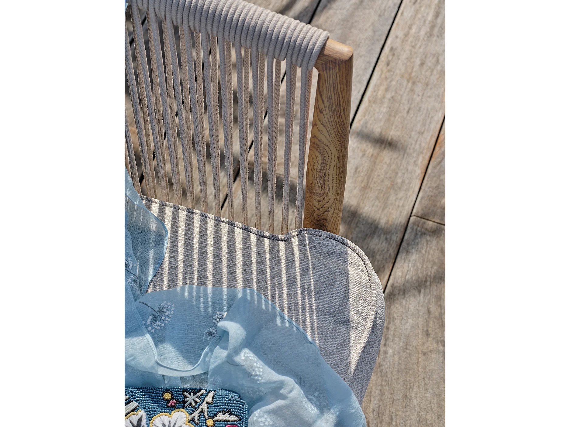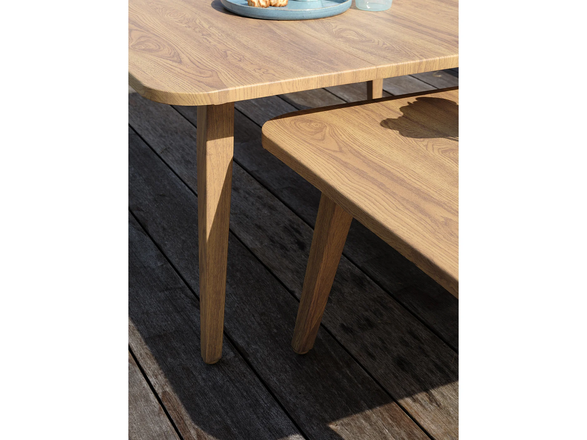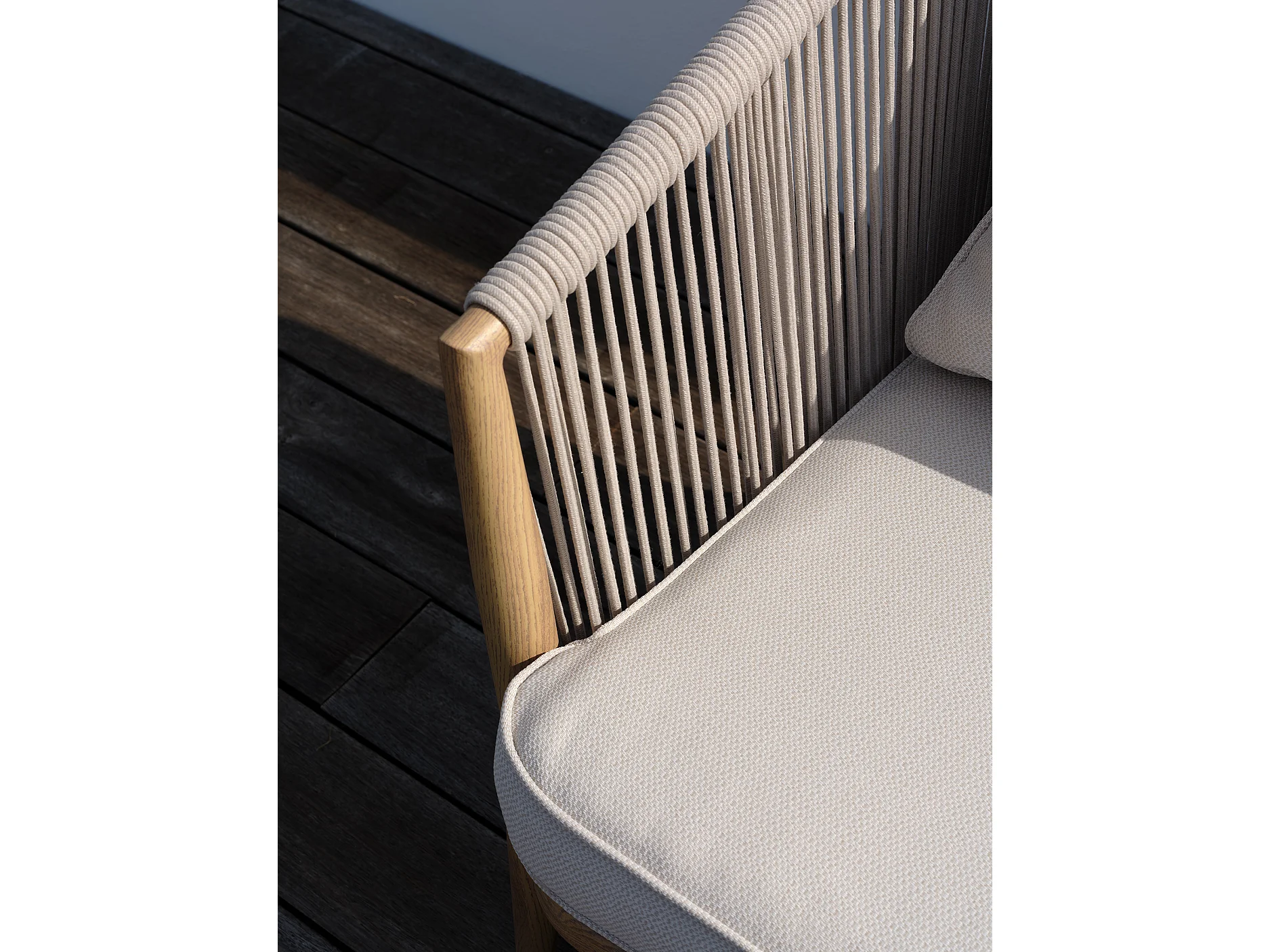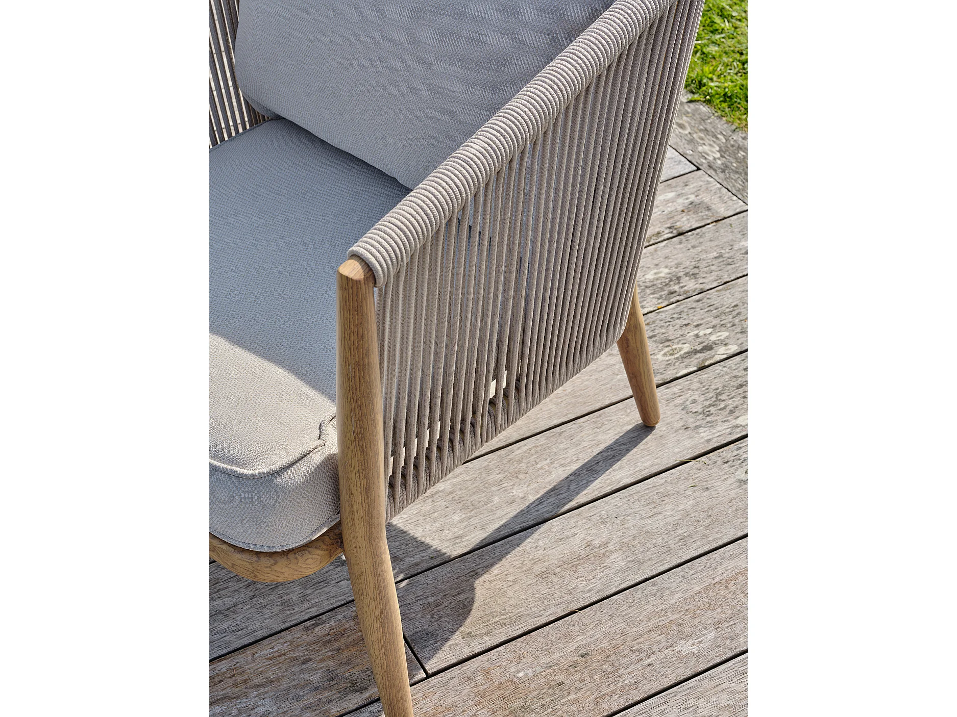 Conjunto de salão de jardim baixo de 5 lugares em alumínio com efeito madeira e corda entrançada