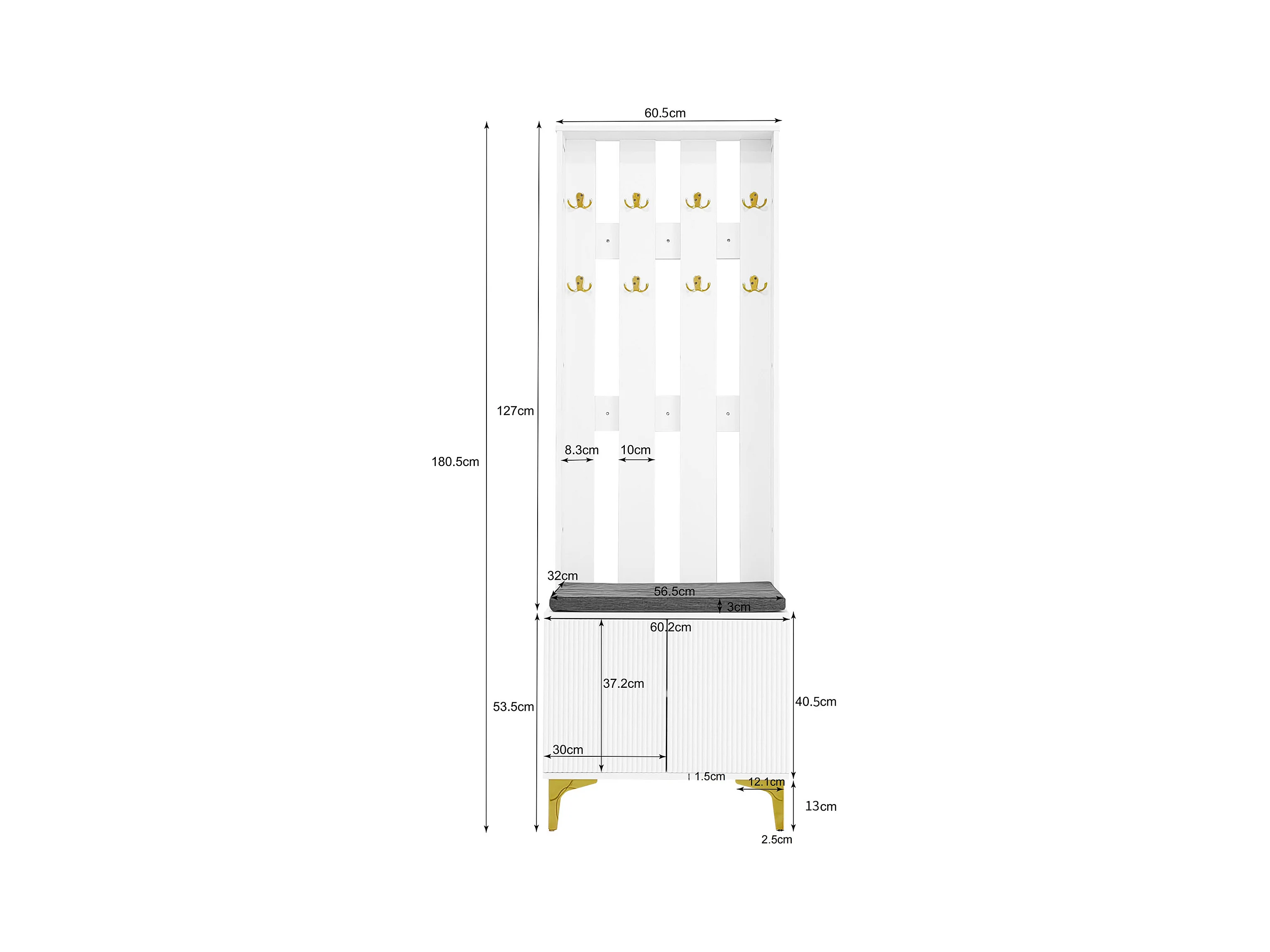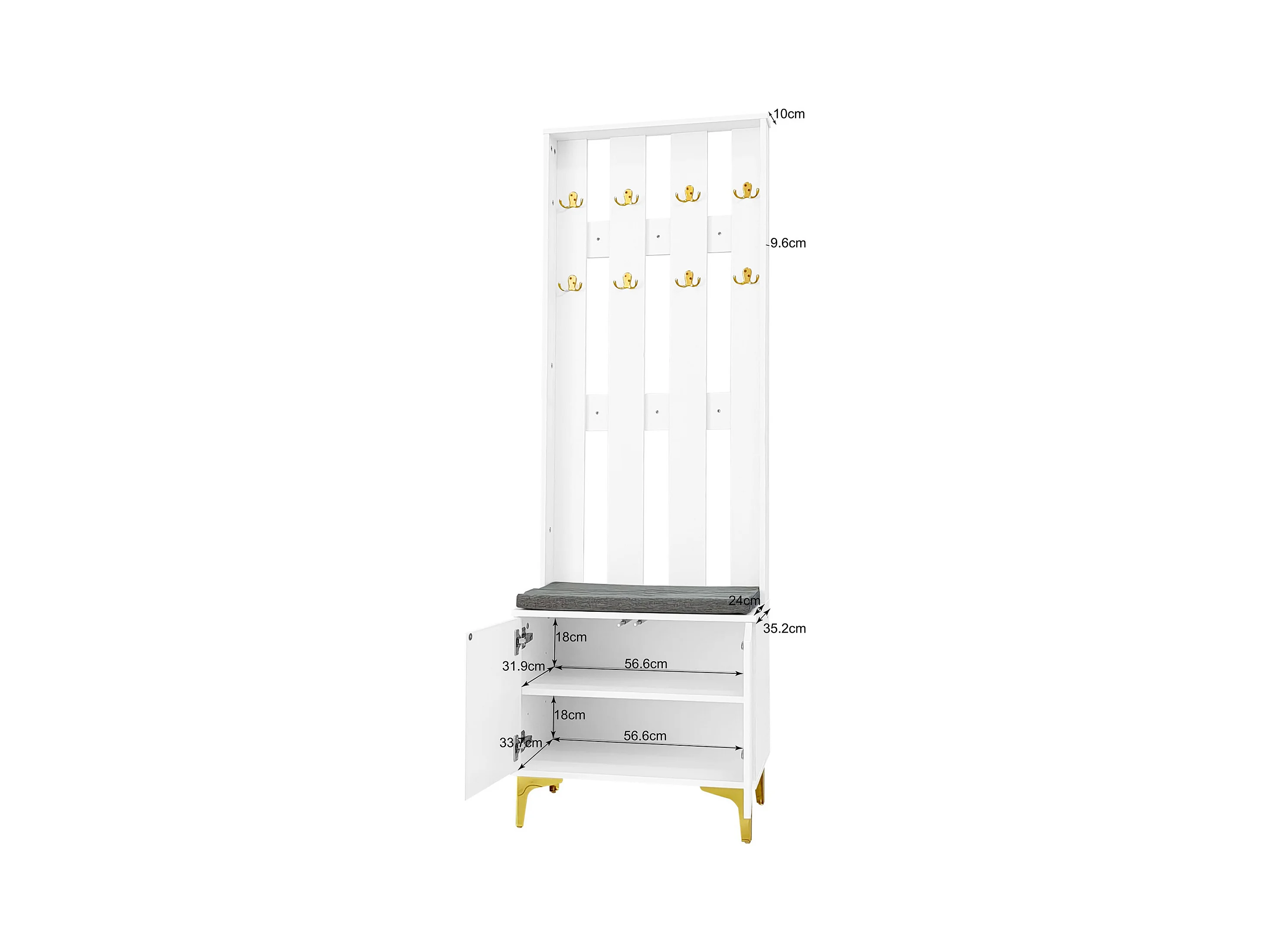Conjunto de sapateira com sapateira, cabideiro - 60,5x35,2x180,5 cm + 83x35x101 cm - Aglomerado - Branco
