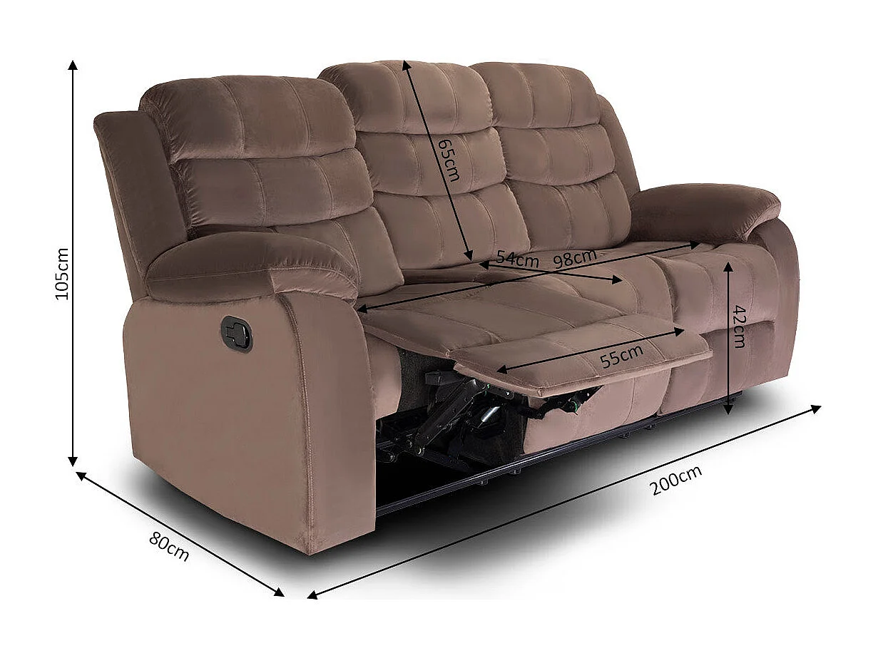 Conjunto de Sofás Reclináveis ​​3+2+1 lugares Grace Marrom