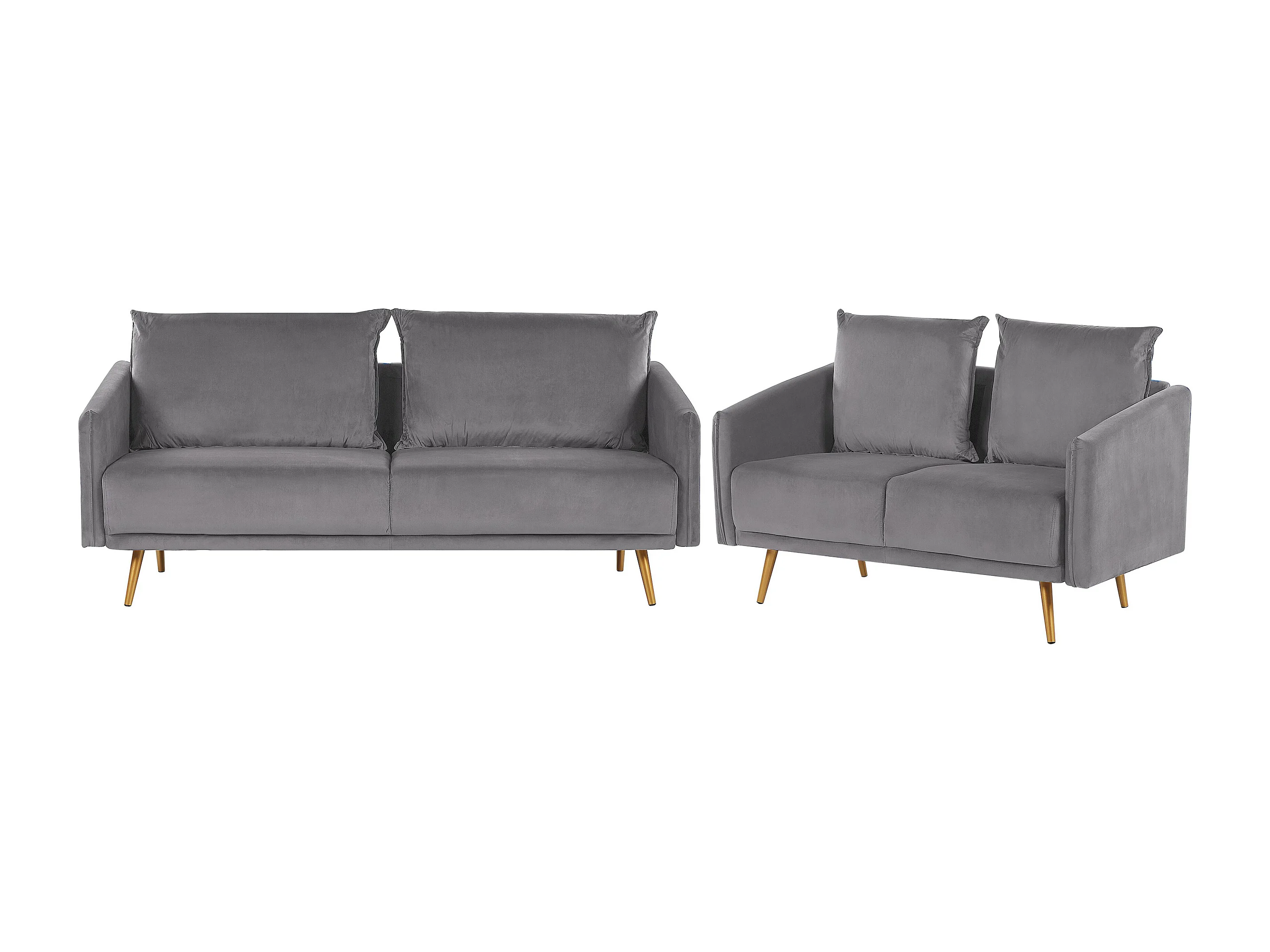 Conjunto de sala de estar MAURA Veludo Cinzento 5 lugares
