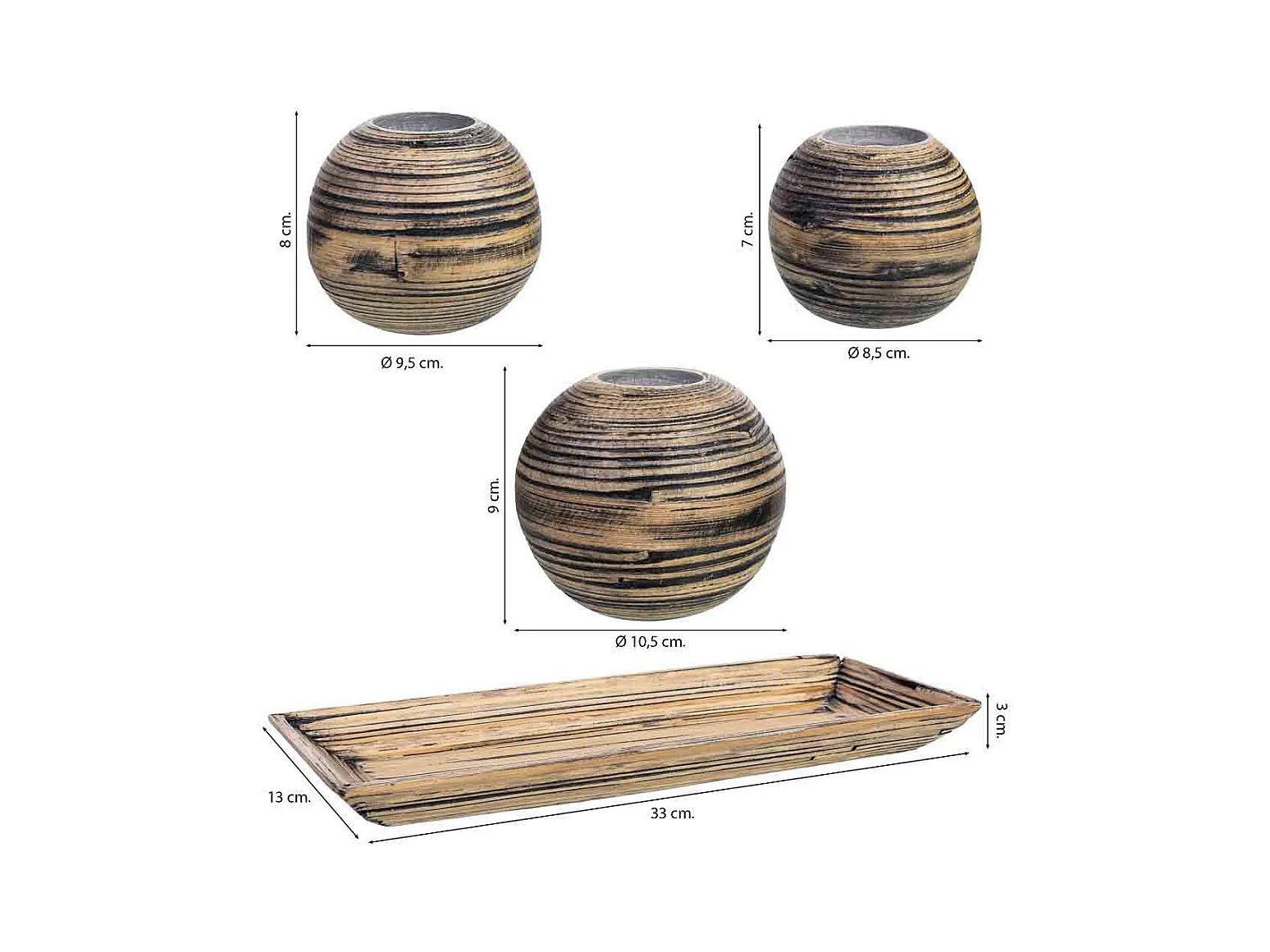 Conjunto de tabuleiro e 3 porta-velas em madeira de bambu castanho 33x13x3h cm