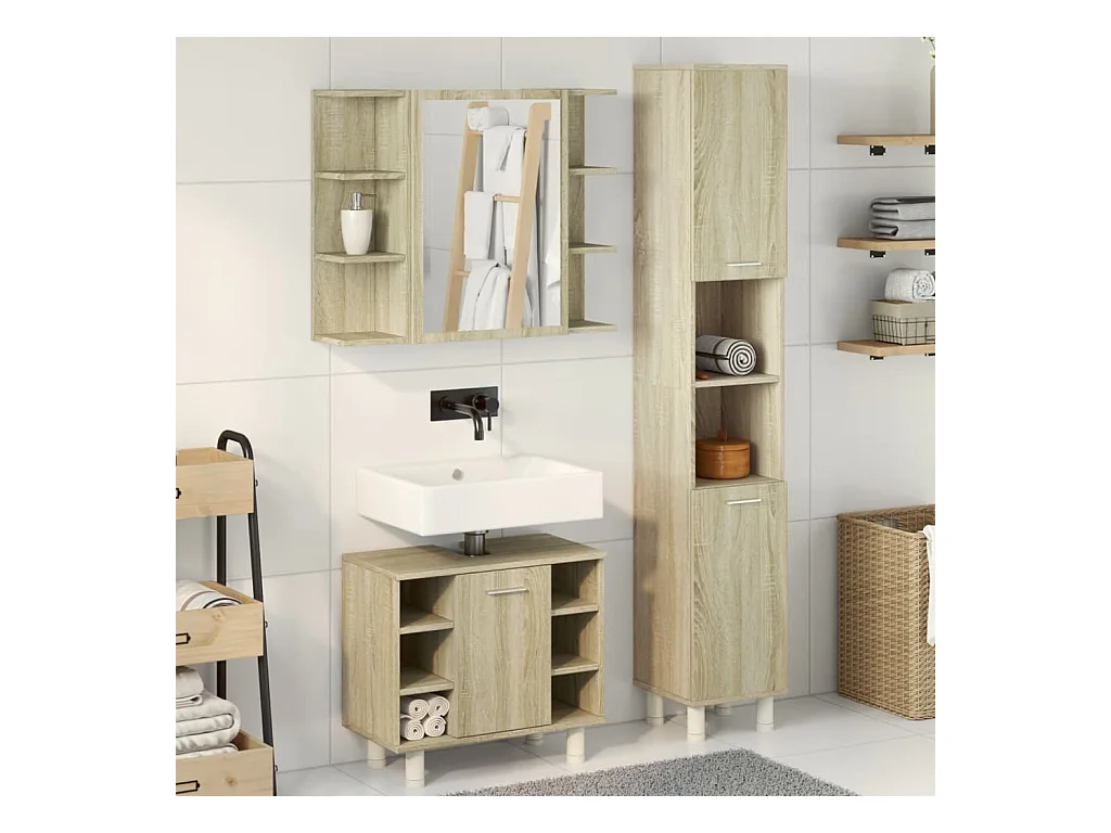 Conjunto de toucador de banheiro de 3 peças Sonoma Oak