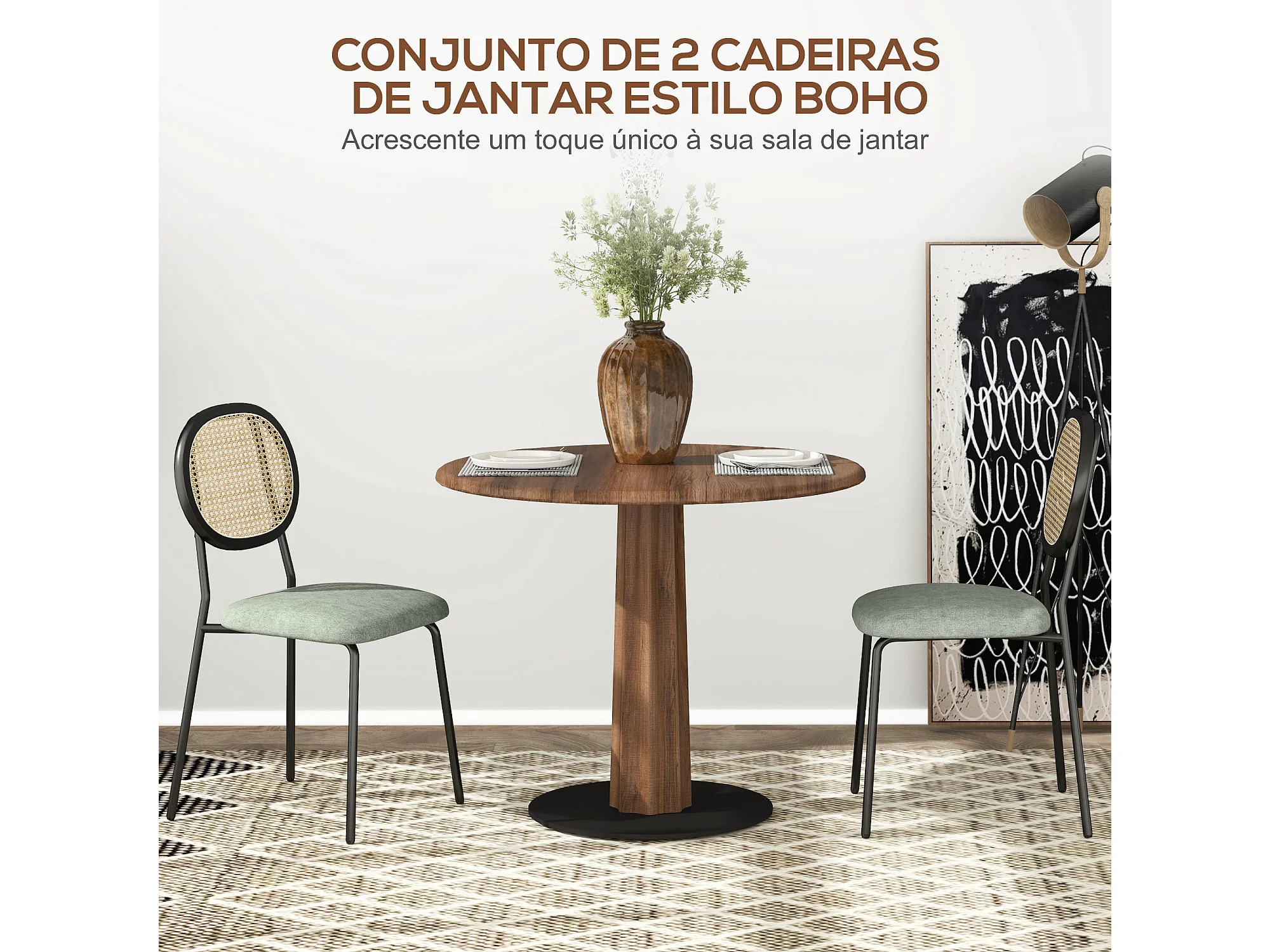 Conjunto Elegante de 2 Cadeiras de Jantar em Vime Sintético e Aço para Cozinha e Sala de Jantar