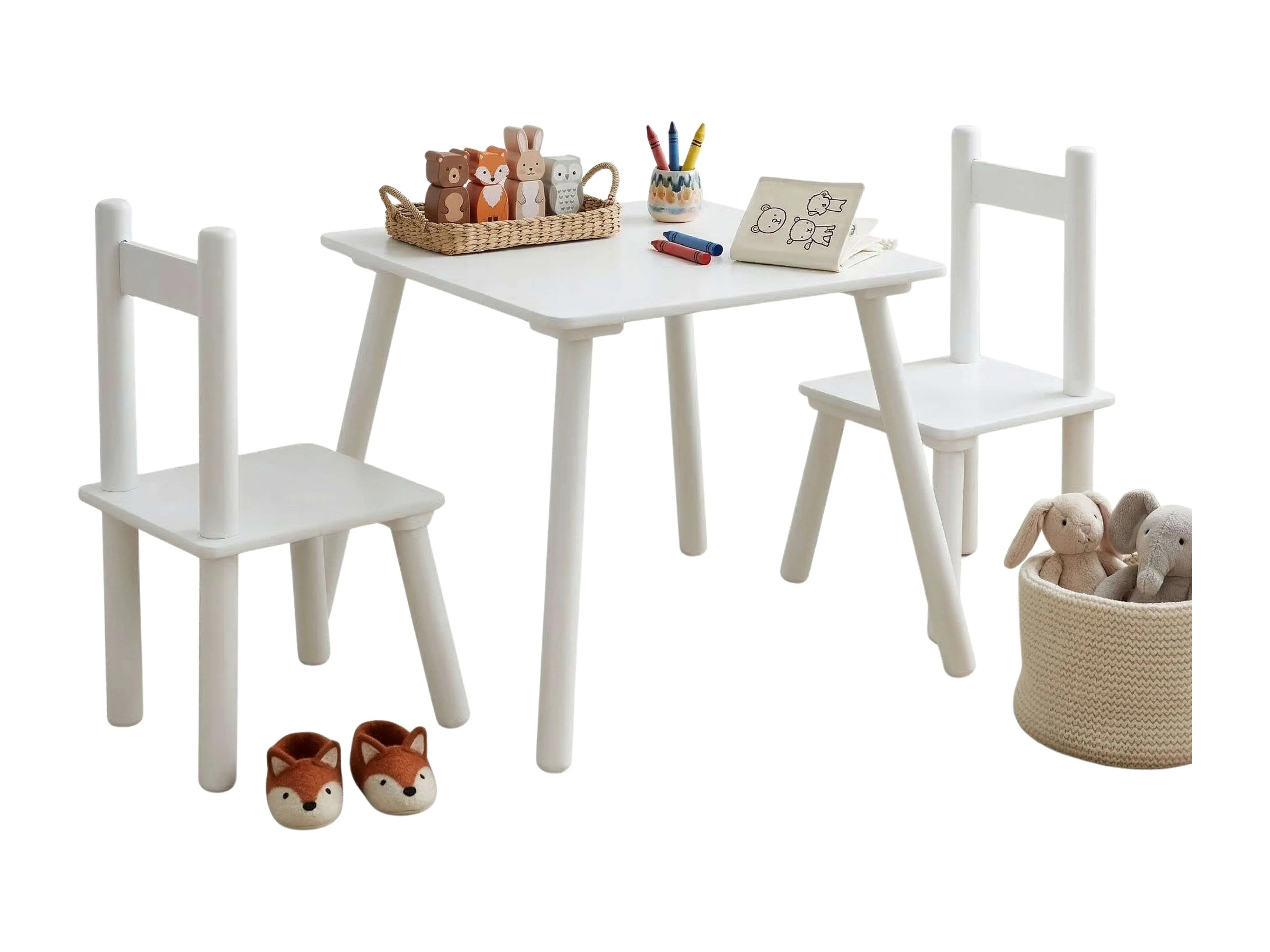 Conjunto infantil Origami, mesa de melamina branca 50x43,5x50cm + 2 cadeiras 26x51x28cm