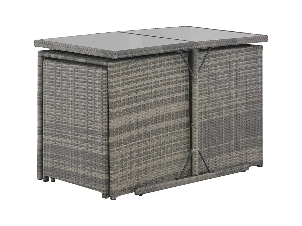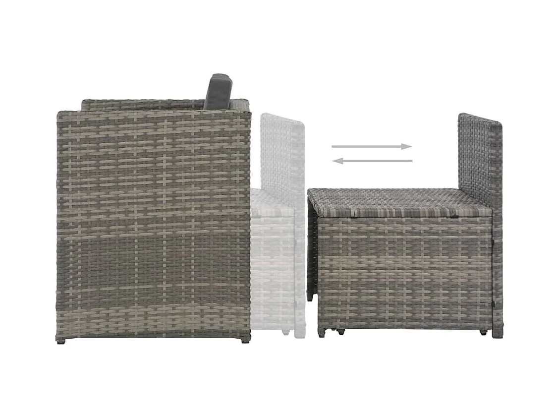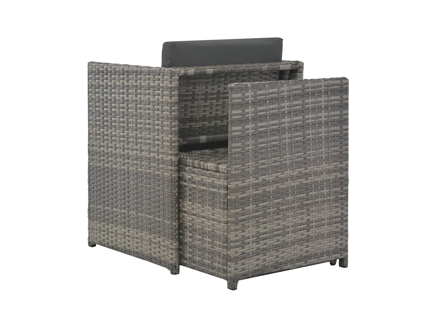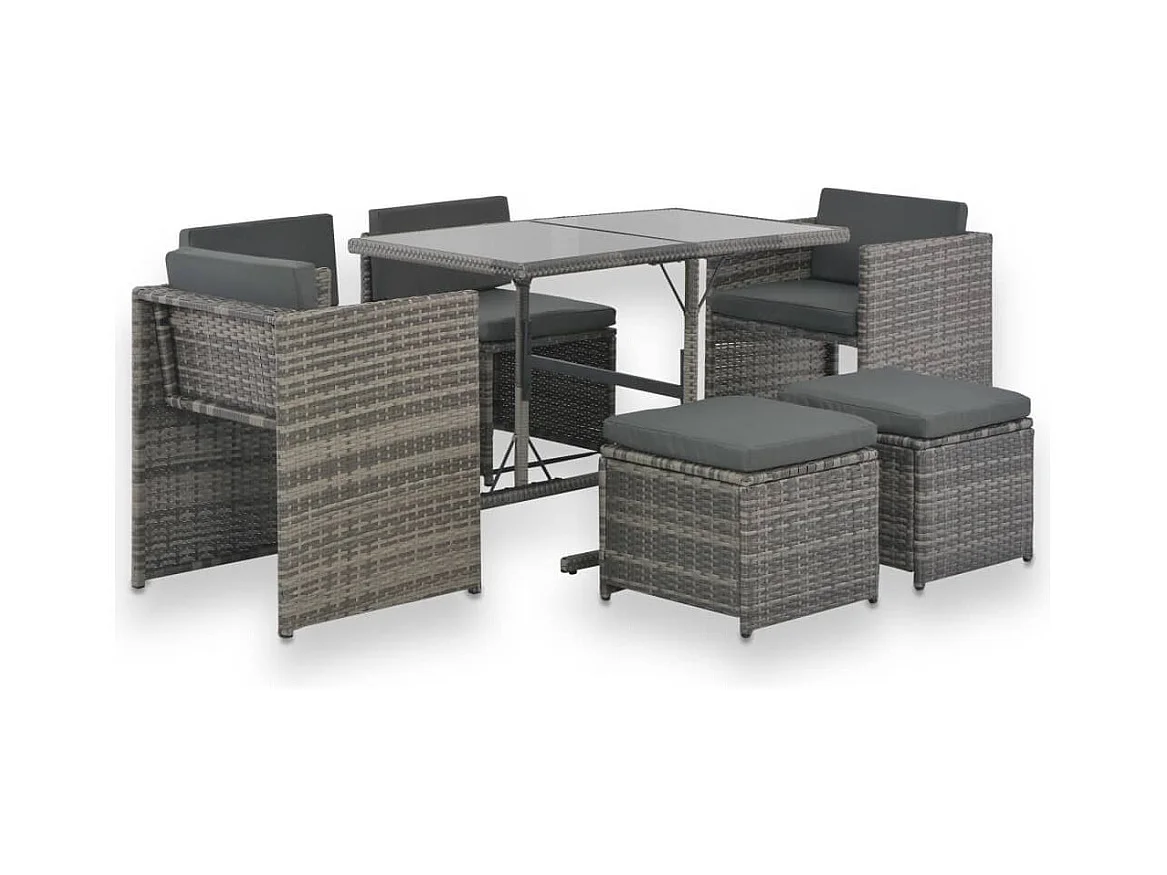 7 peças conjunto de jantar para jardim com almofadões vime PE cinza