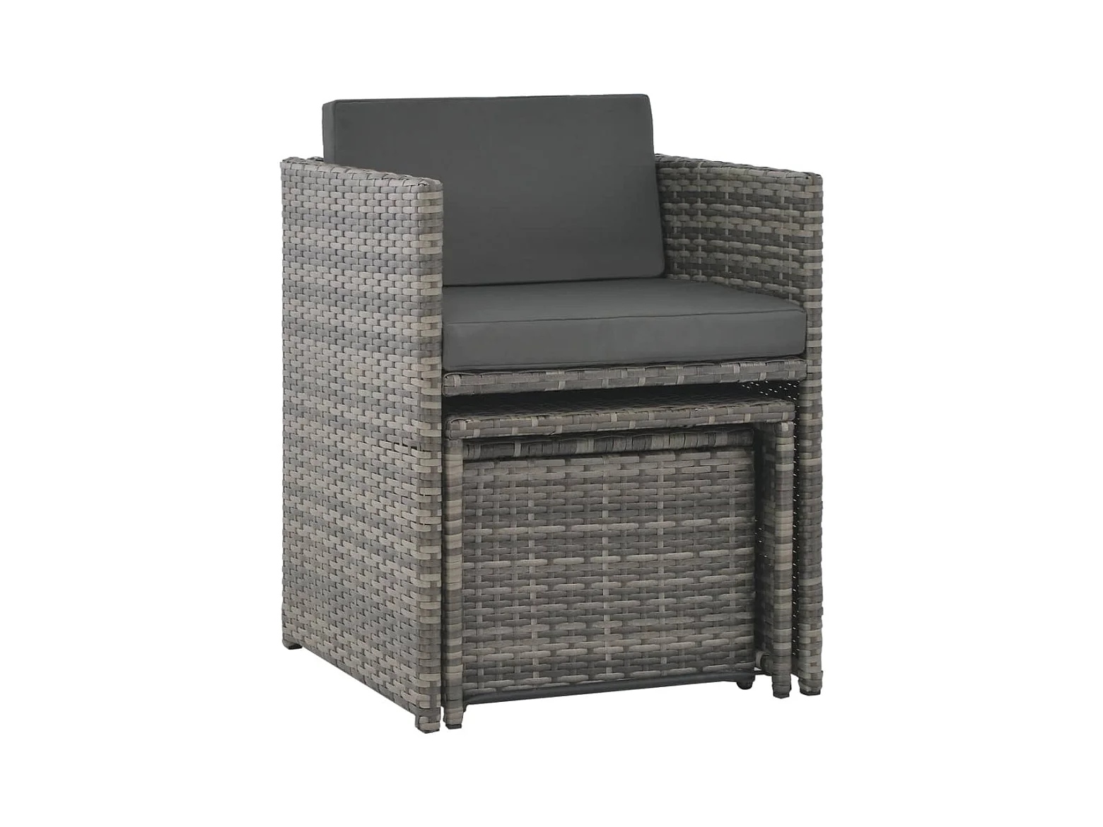 7 peças conjunto de jantar p/ jardim c/ almofadões vime PE cinza