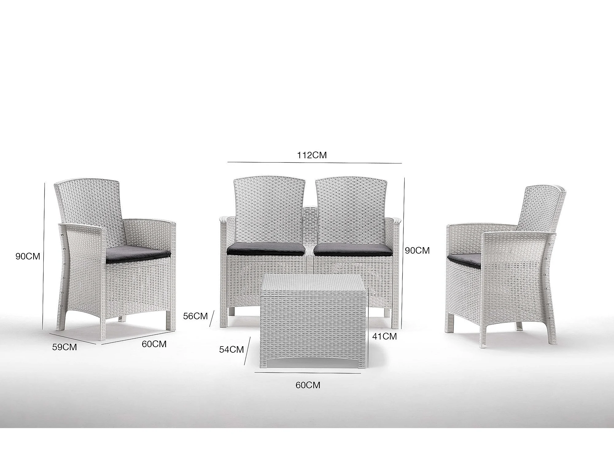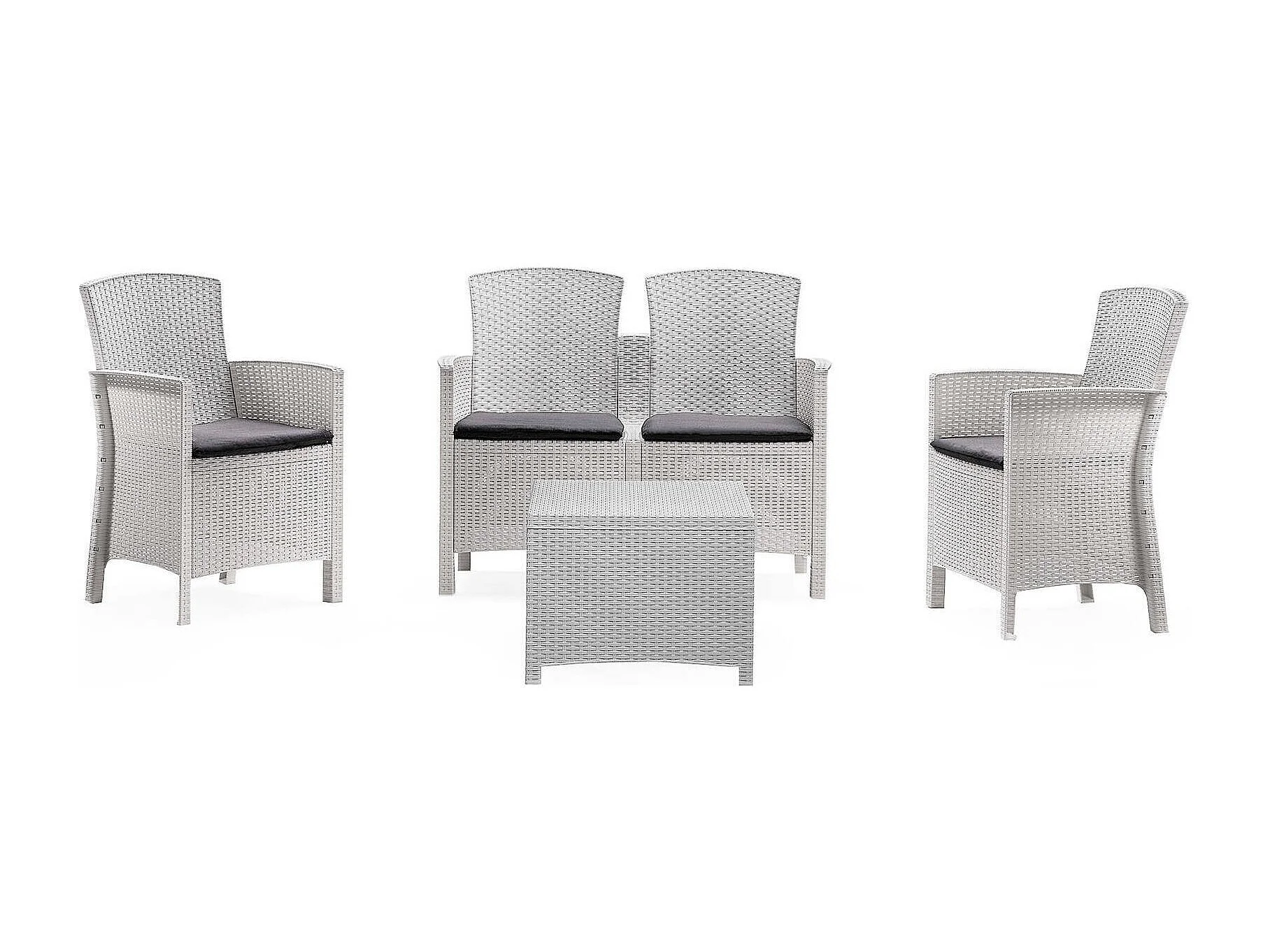 Conjunto lounge para exterior Urano, Conjunto de jardim com almofadas, Conjunto lounge interior e exterior com efeito Rattan, 100% Fabricado em Itália, Branco