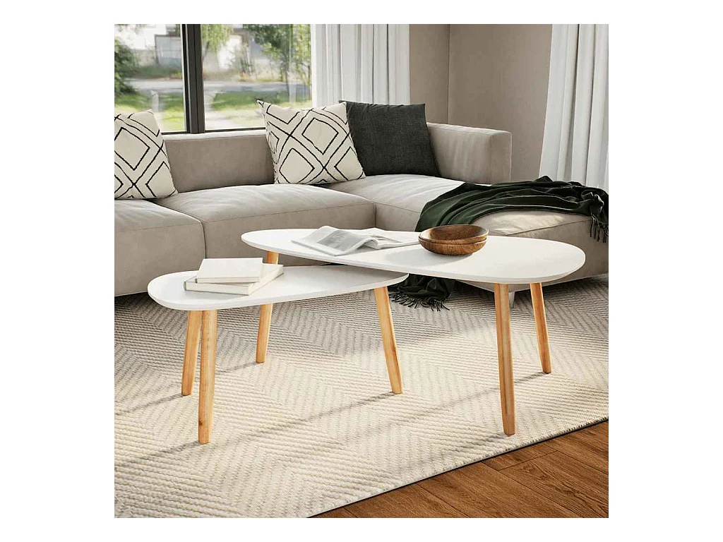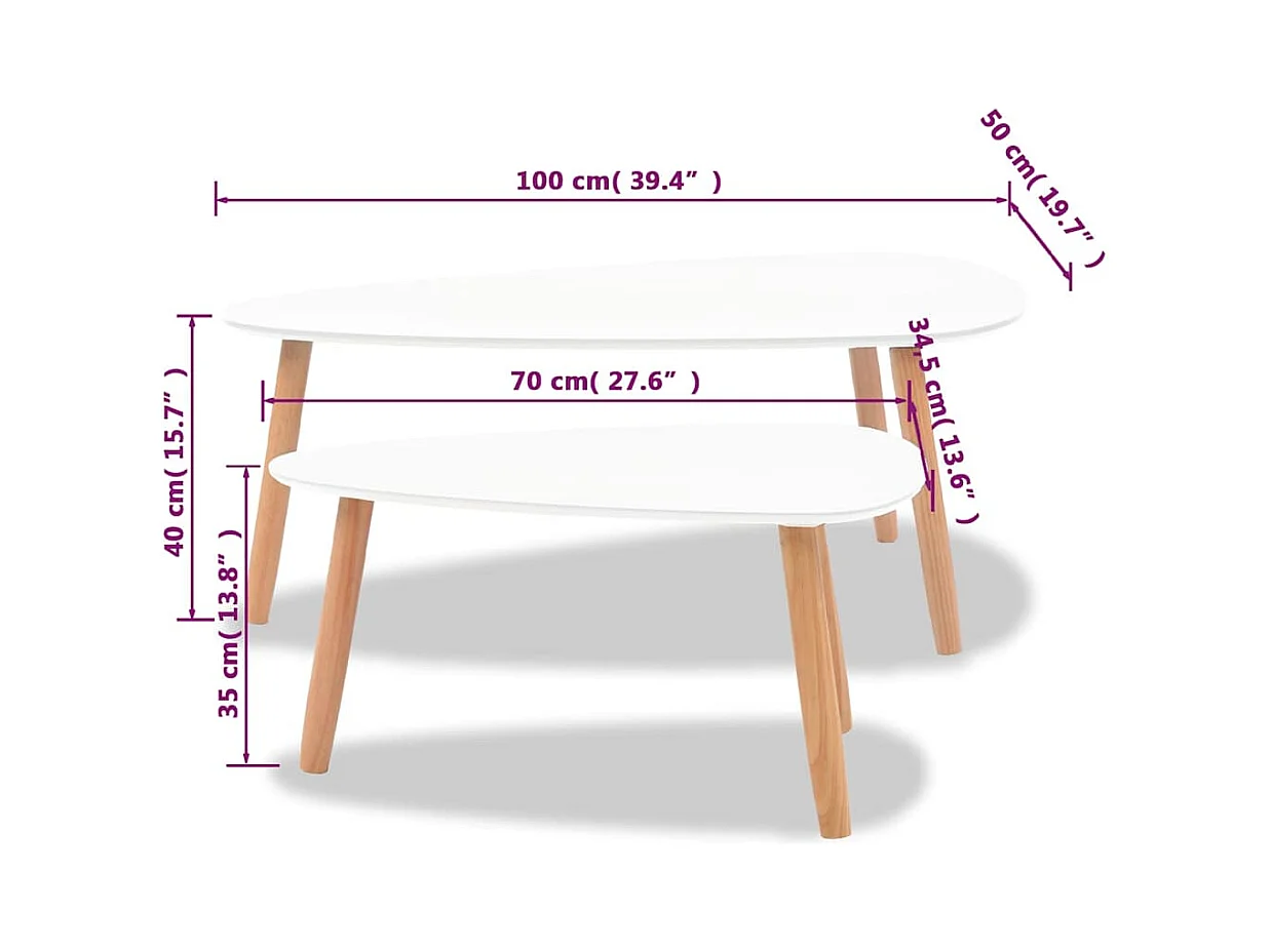 Conjunto mesas de centro 2 peças pinho maciço branco