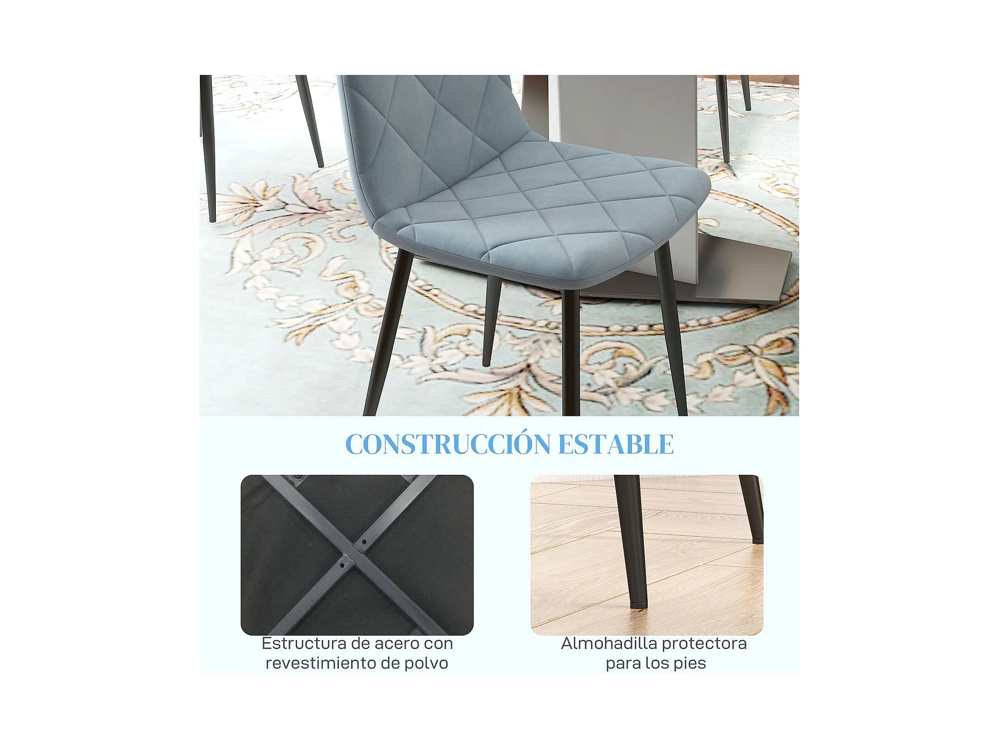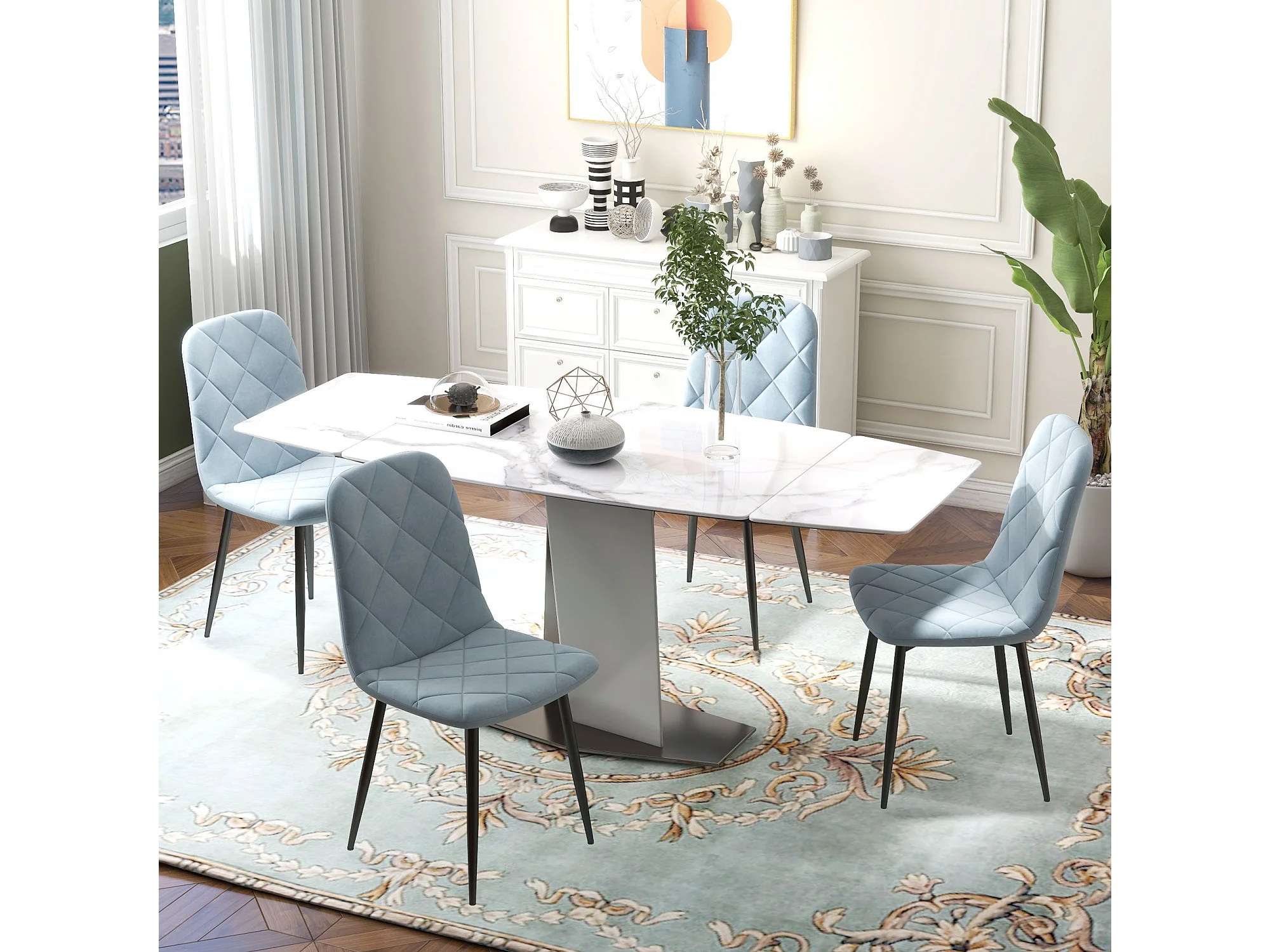 Conjunto Moderno de 4 Cadeiras de Jantar Estofadas em Veludo com Pés de Aço para Sala de Estar Azul Claro – Modelo Turku