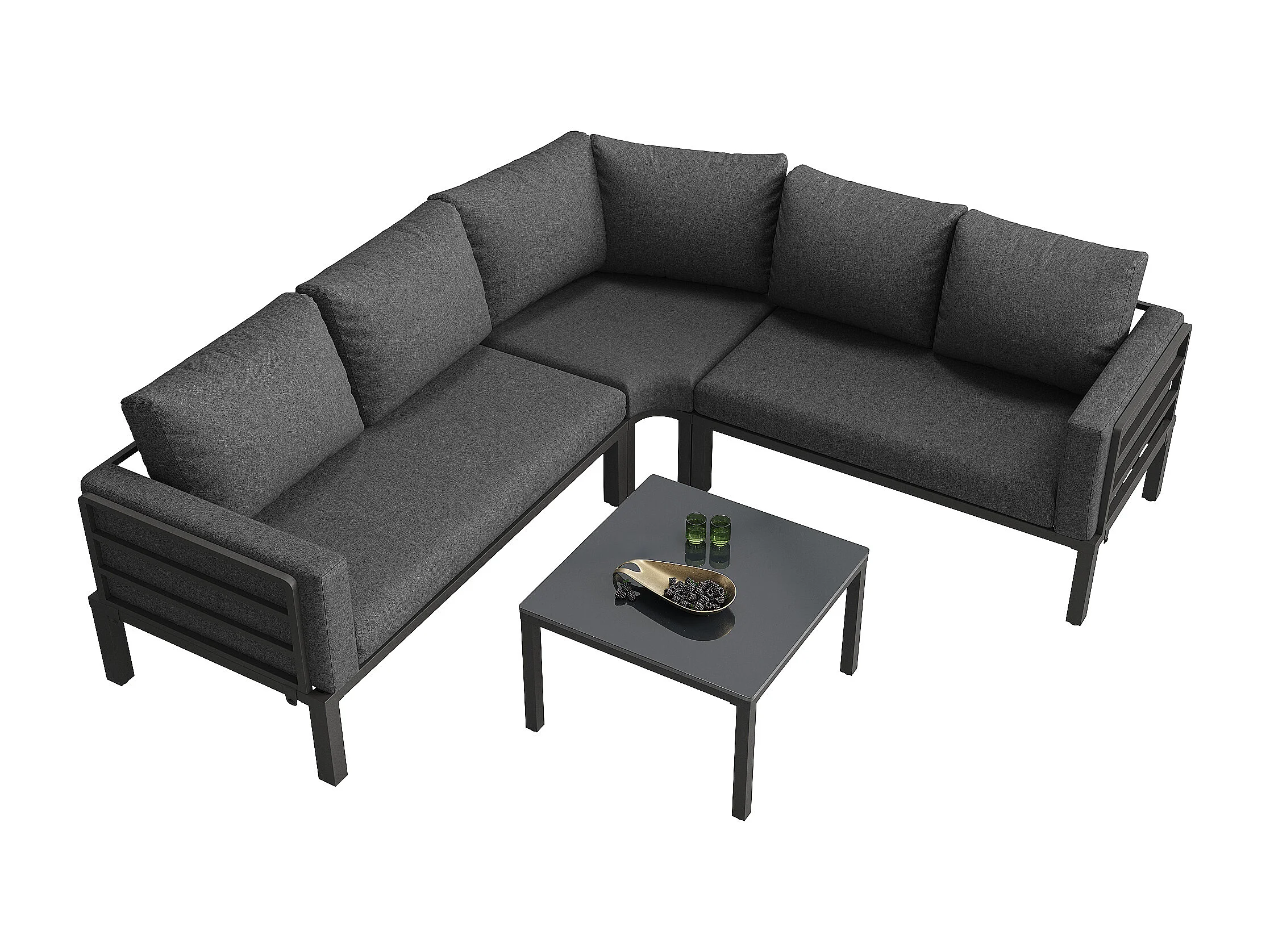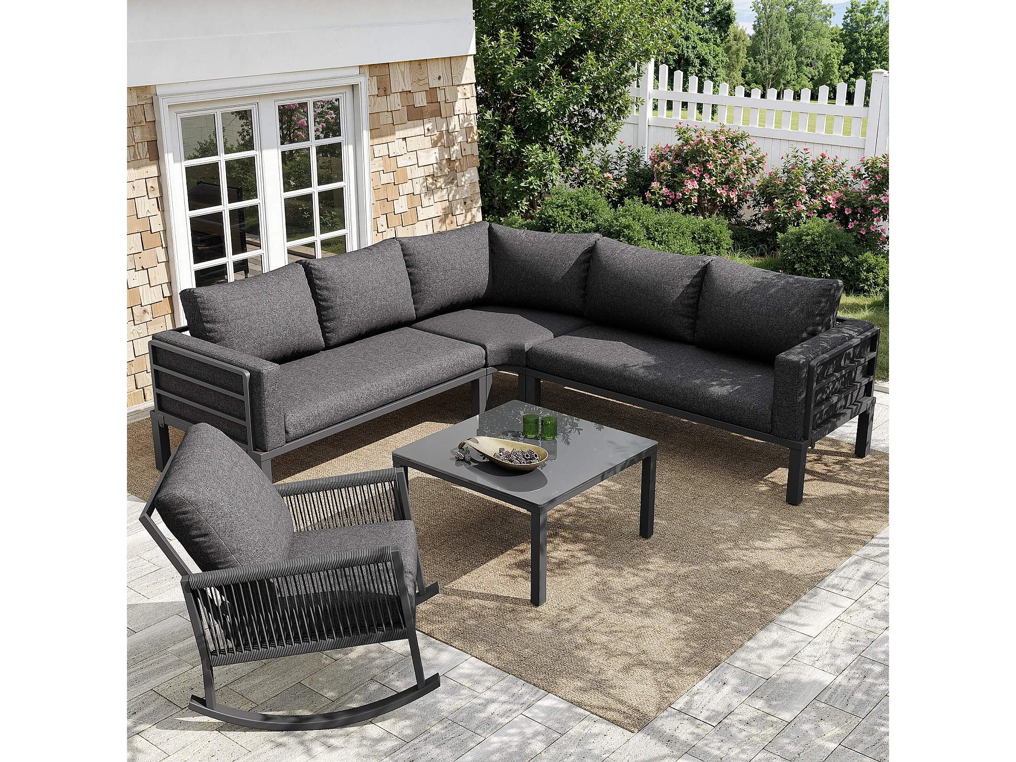 Conjunto modular de móveis de jardim para 5 pessoas - com 1 cadeira de balanço + sofá + mesa + almofadas - metal - cinza