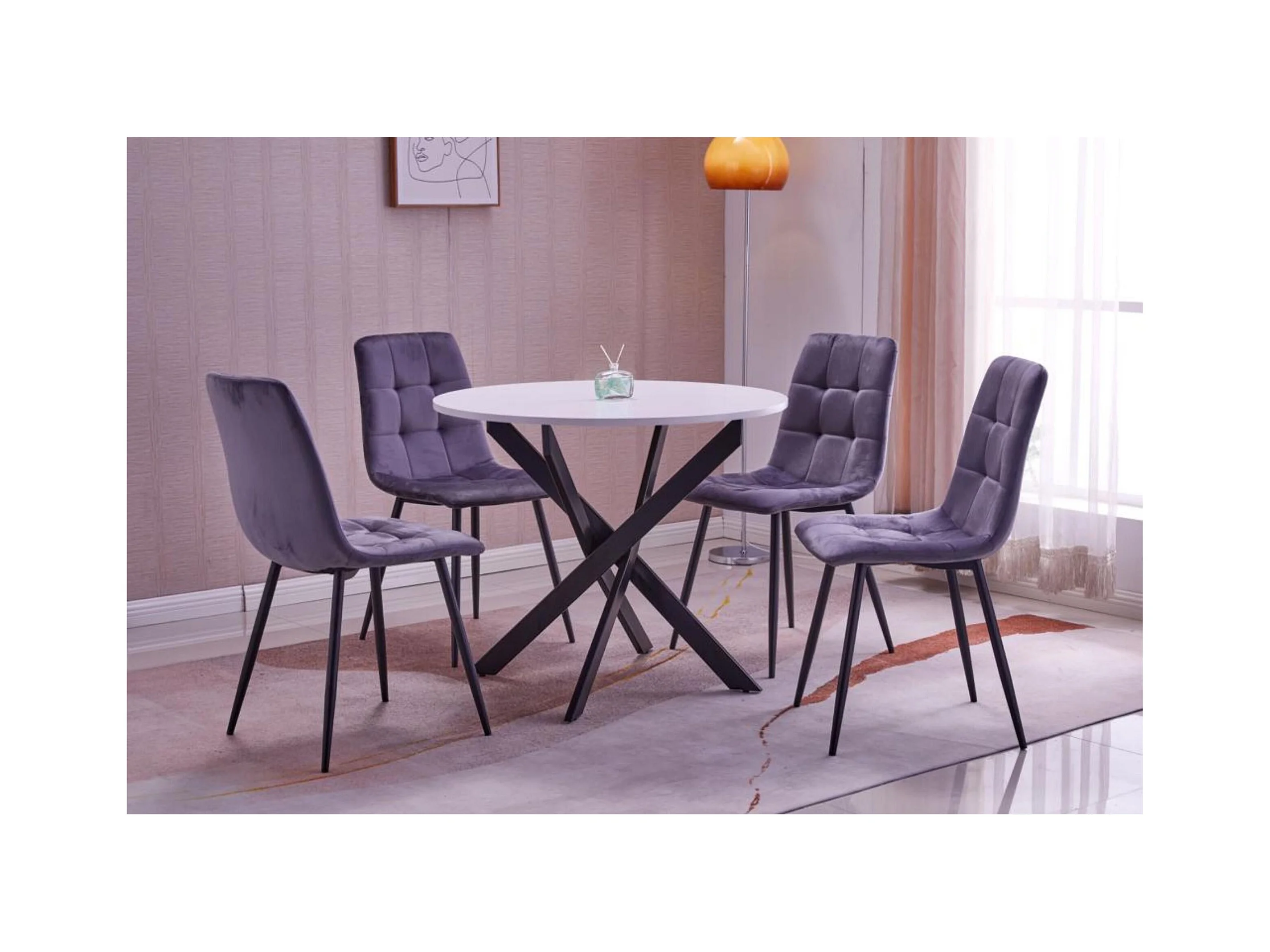 Conjunto de mesa de jantar redonda D 100 x A 75 cm + 4 cadeiras de veludo - Madeira MDF e metal - Preto + branco