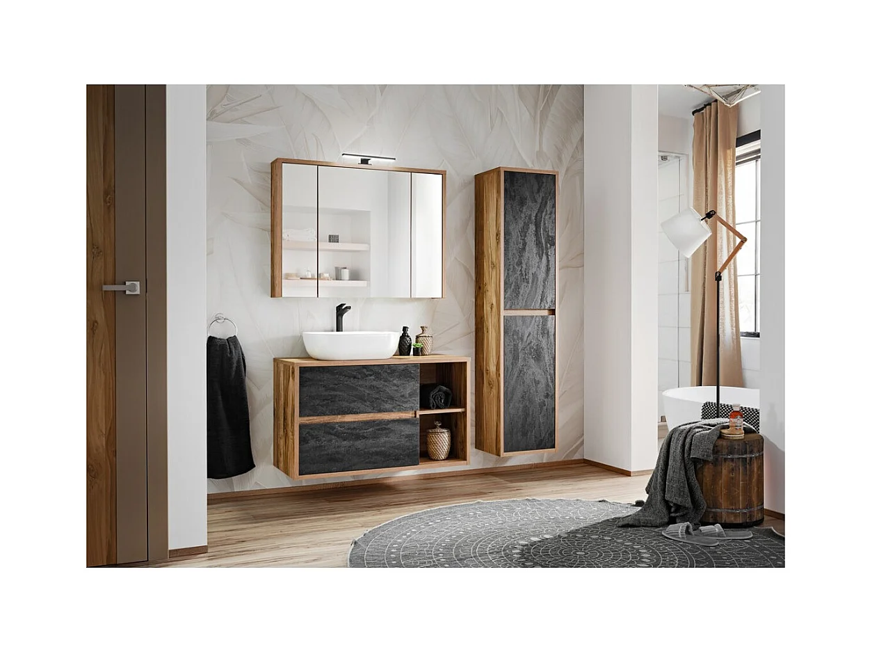 Conjunto para banheiro GABI – Móvel sob a pia de 100 cm + pia + armário com espelho LED + coluna