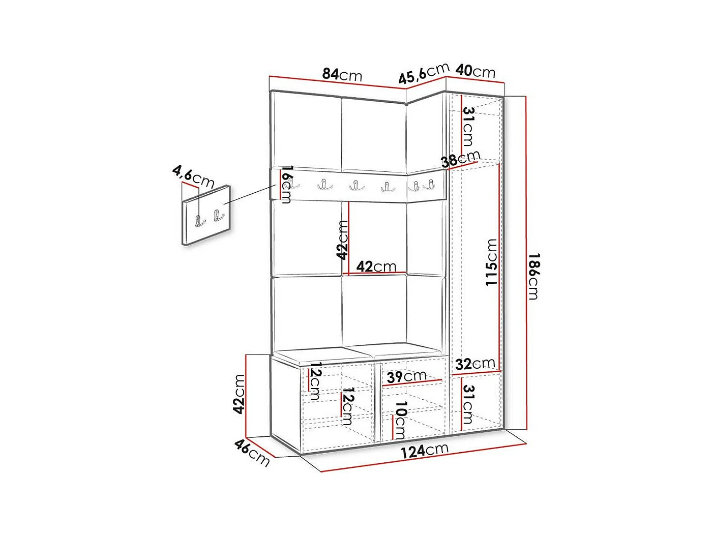 Conjunto para corredor Hartford 266, Colocado, 19x16x5cm