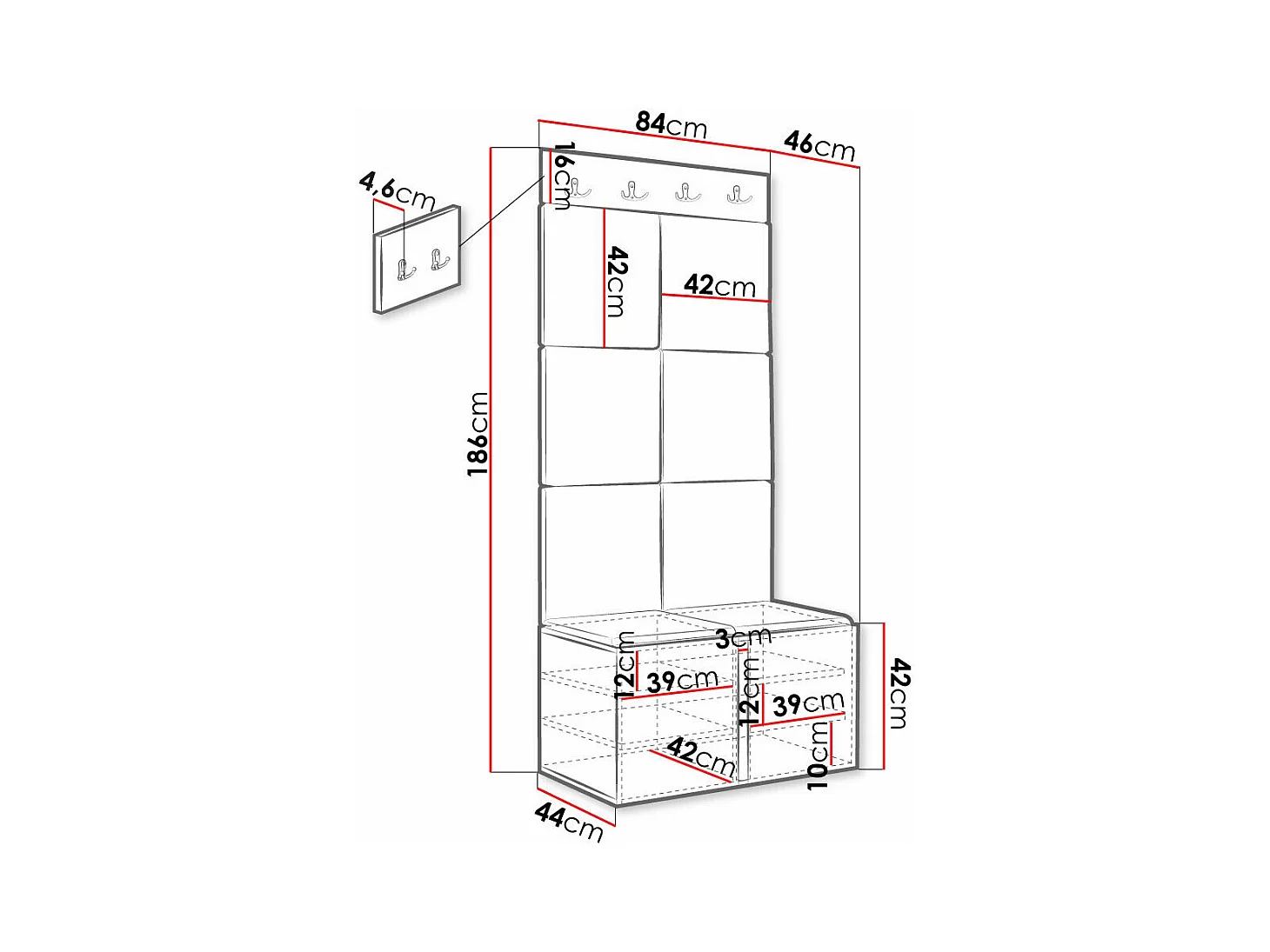 Conjunto para corredor Hartford 386, Montado nas parede, 19x4x5cm
