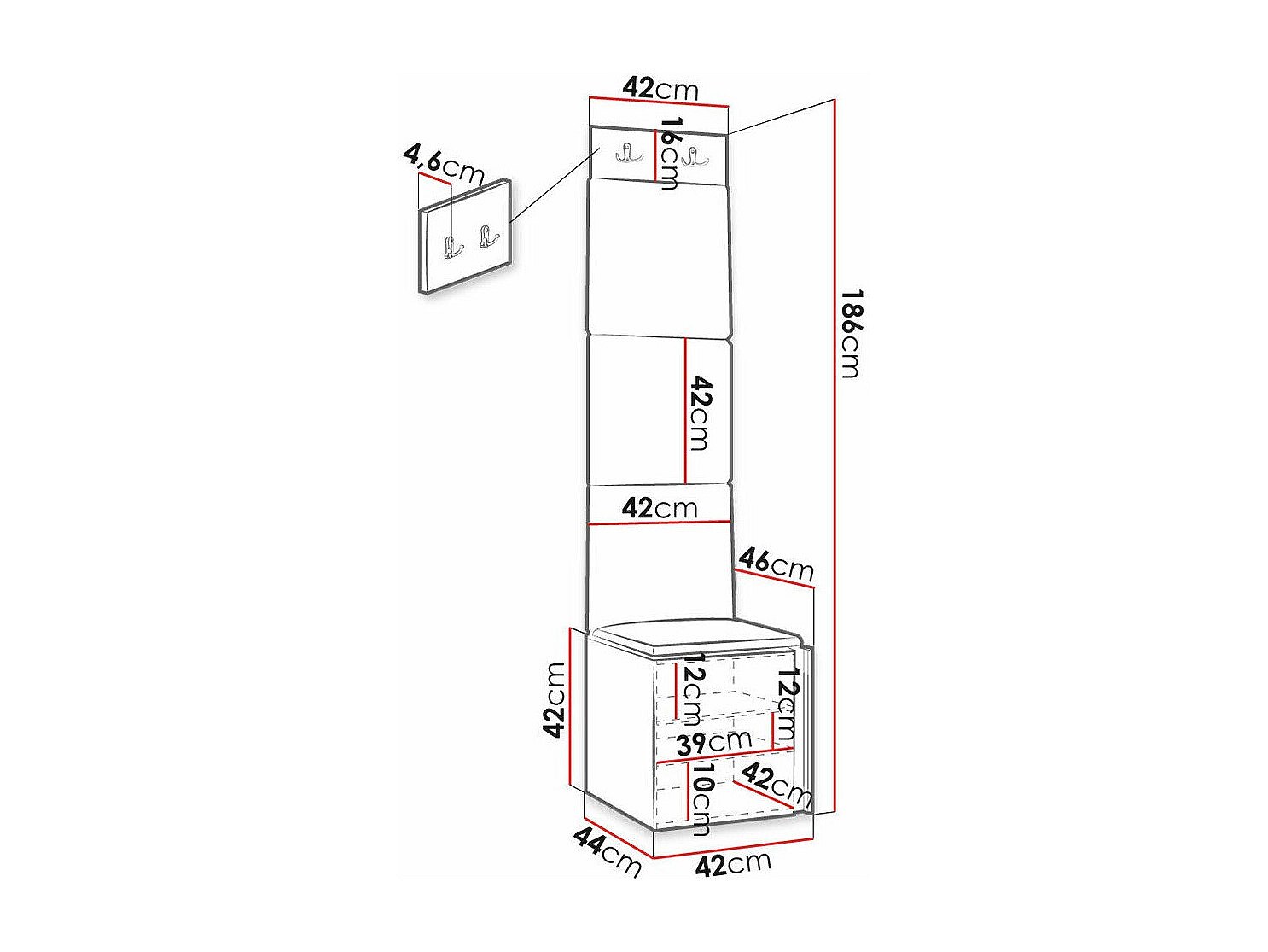 Conjunto para corredor Hartford 378, Montado nas parede, 19x4x5cm
