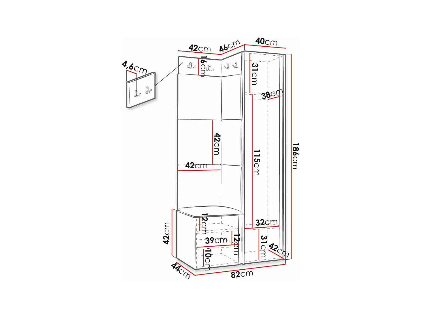 Conjunto para corredor Hartford 379, Colocado, 19x12x5cm