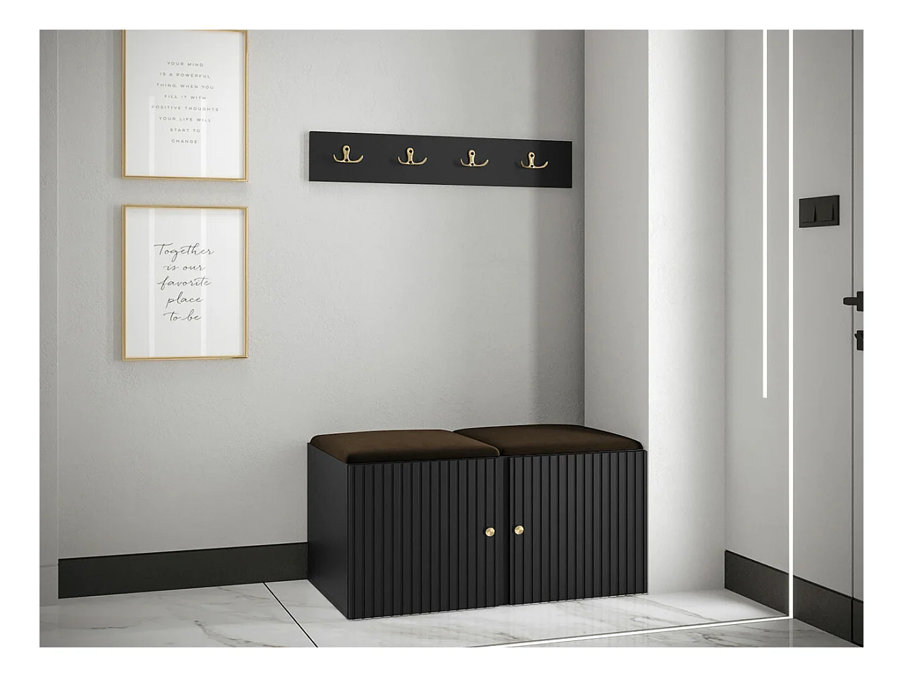 Móvel sapateira/armário - A109cm x C90cm x P27cm carvalho dourado portas impression serrado pés preto - Narvik