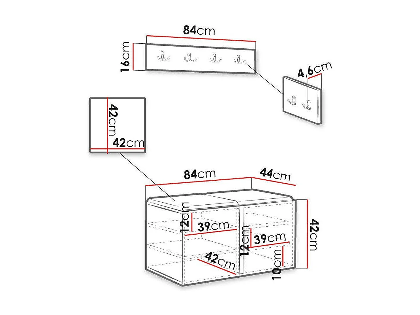 Conjunto para corredor Hartford 385, Montado nas parede, 19x12x5cm