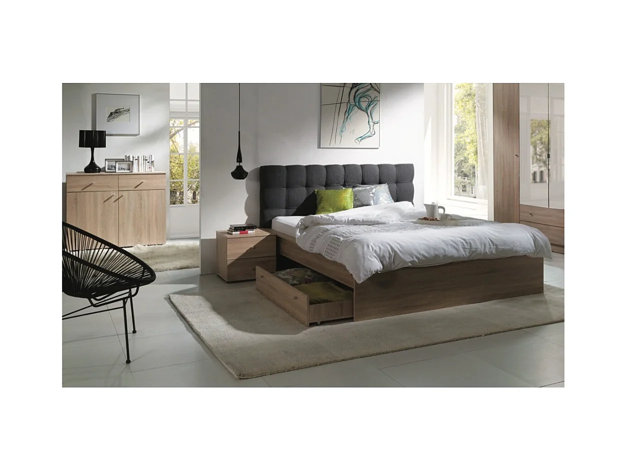 Cama NOFI carvalho Sonoma 160x200 cm com gavetas, ideal para quarto. Móvel design.