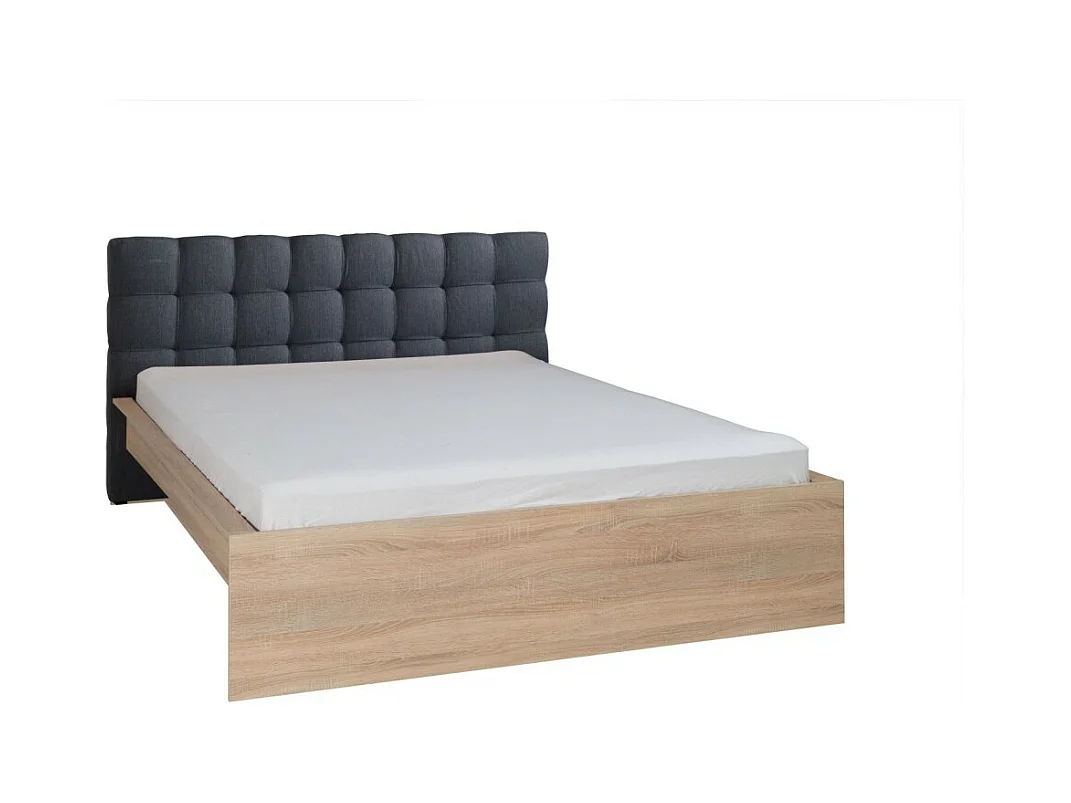 Lit adulte design 160x200 - Sommier inclus - Collection IZO. Coloris chêne et gris anthracite.