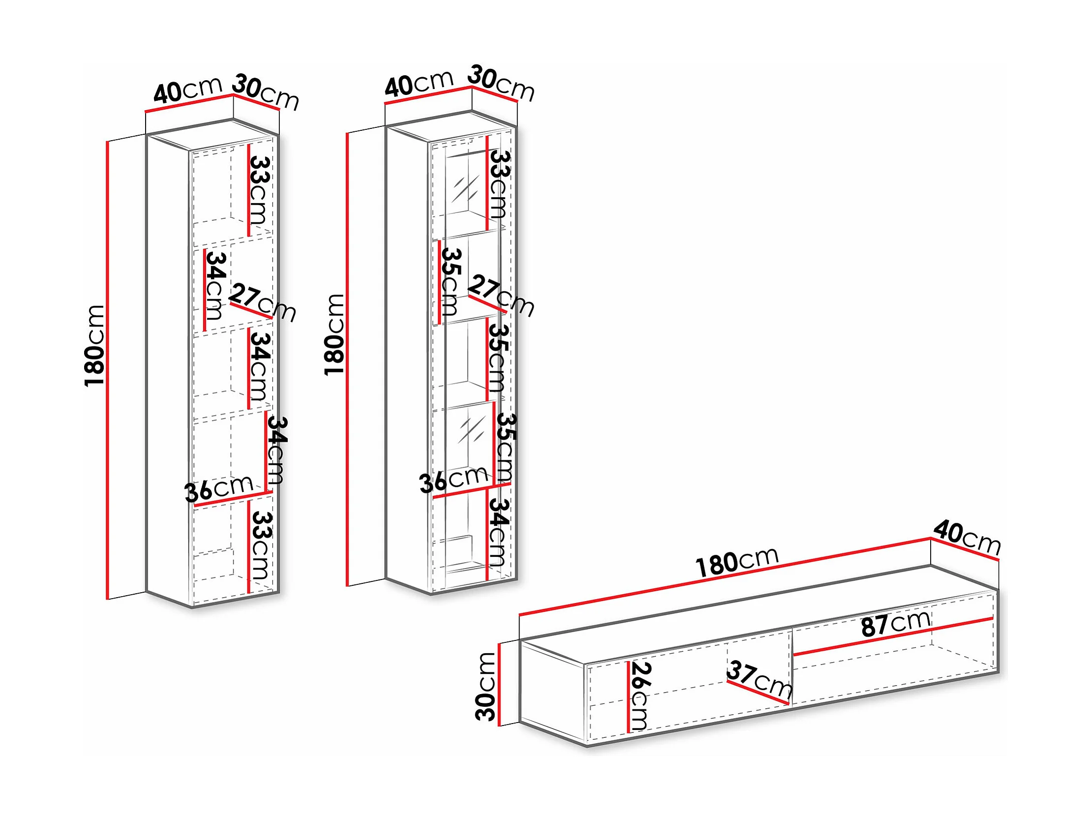 Móvel de parede para TV cinzento
