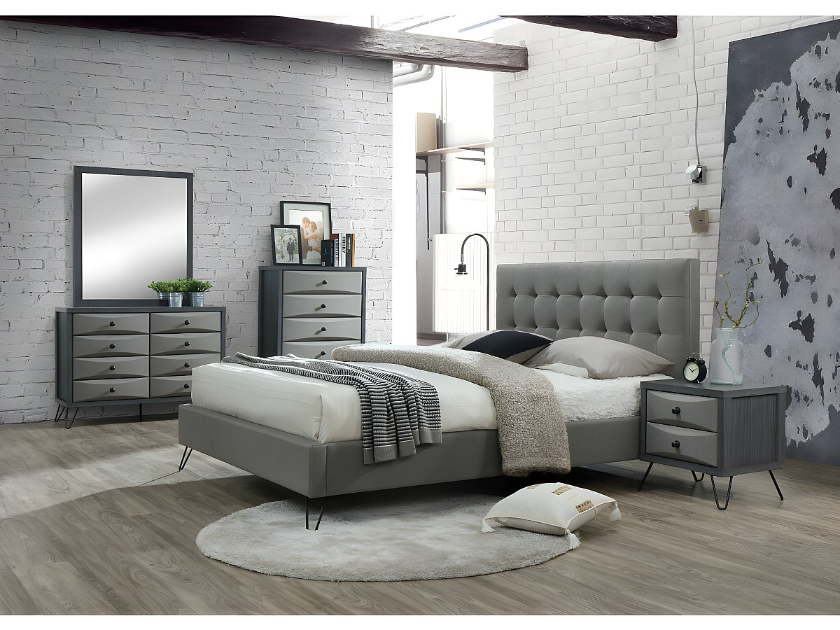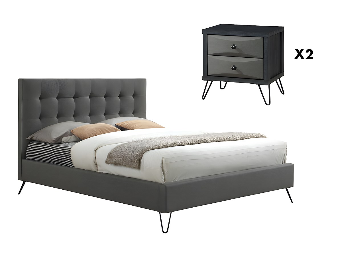 Conjunto QUARTO COSTANZA - cama 160x200cm e 2 mesas de cabeceira - Tecido cinza