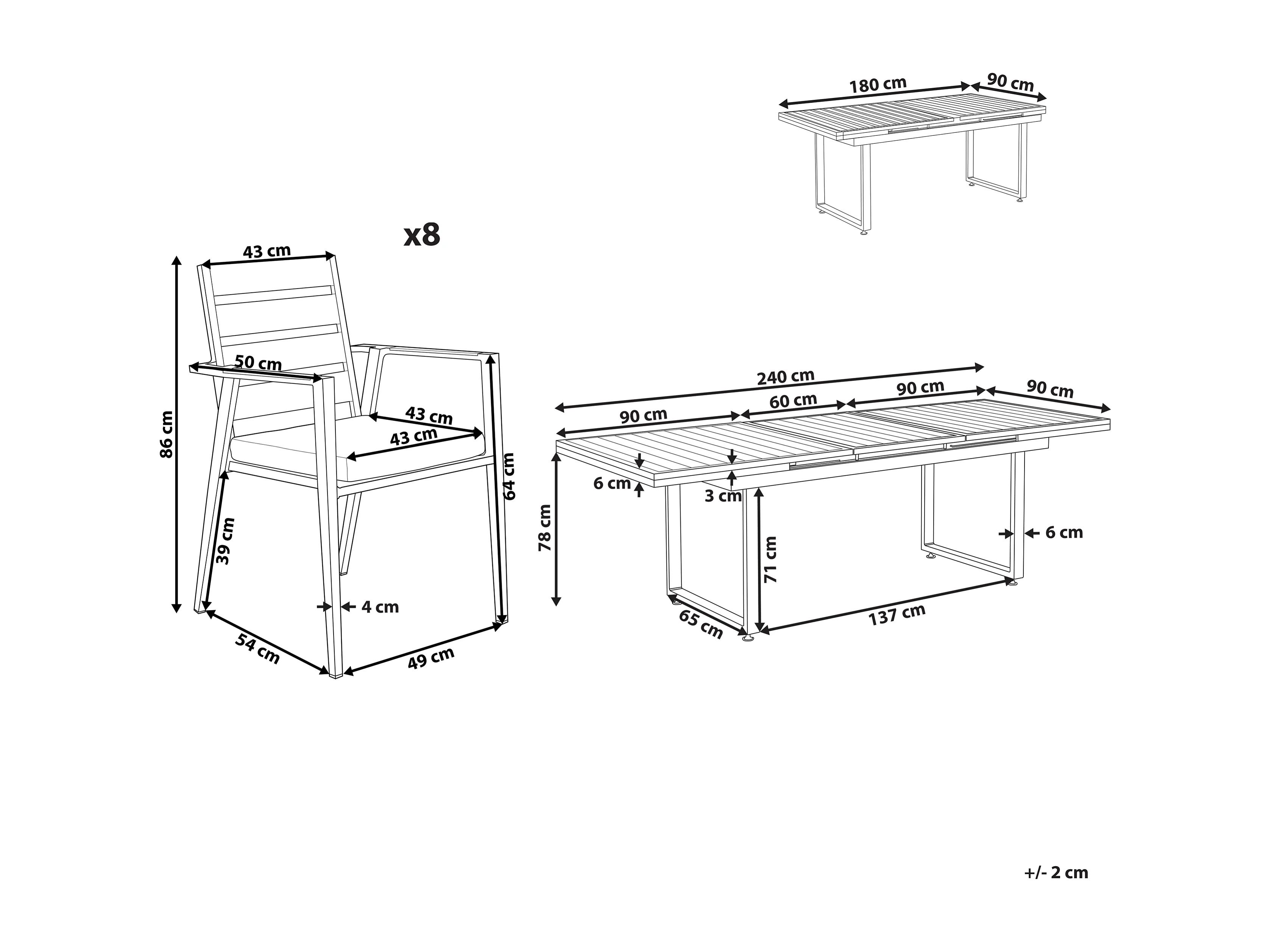 Conjunto de refeições de jardim 8 lugares VALCANETTO/TAVIANO com almofadas Metal Preto