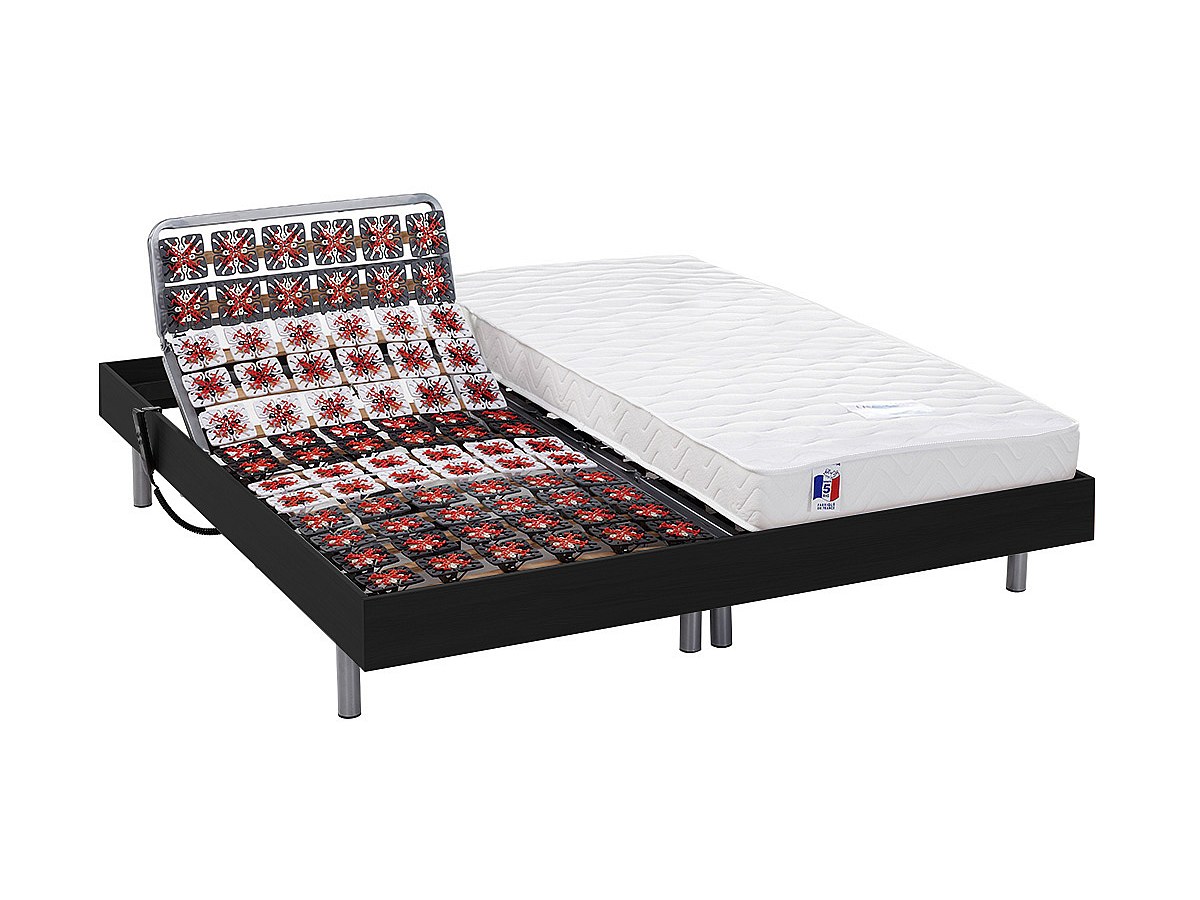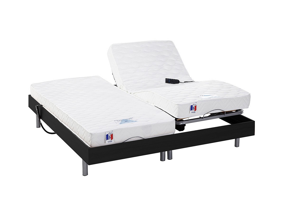 Conjunto relaxamento com estacas 100% látex HOMERE III de DREAMEA - preto - 2x90x200 cm - motores OKIN
