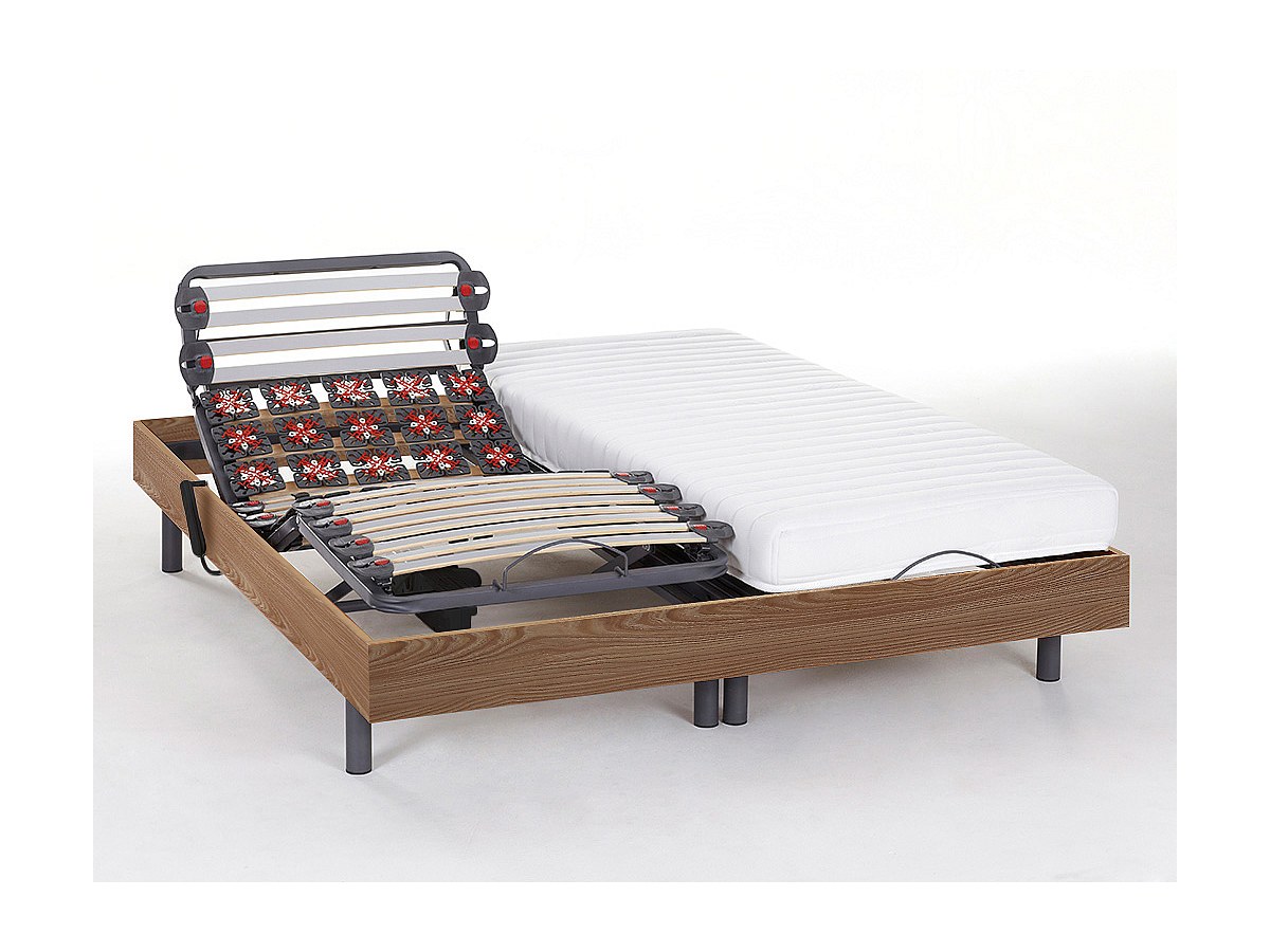 Cama elétrica completa composta por 2 sommiers de ripas e discos de molas, 2 colchões látex e 8 pés.
