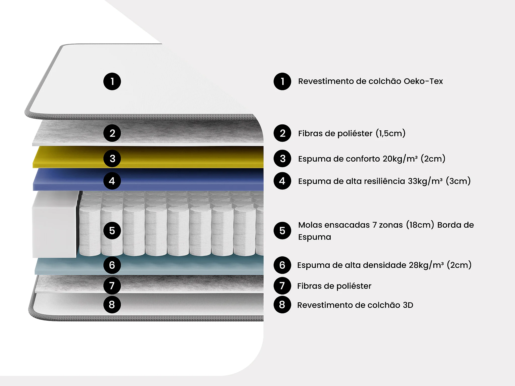 • Molas ensacadas 7 zonas de apoio