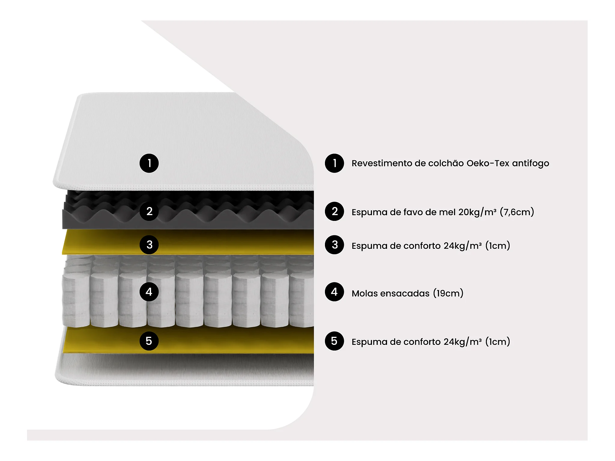 Conjunto 140 x 190 cm estrado + colchão antifogo molas ensacadas e sobrecolchão integrado esp. 28 cm - DELICE da YSMÉE HÔTEL
