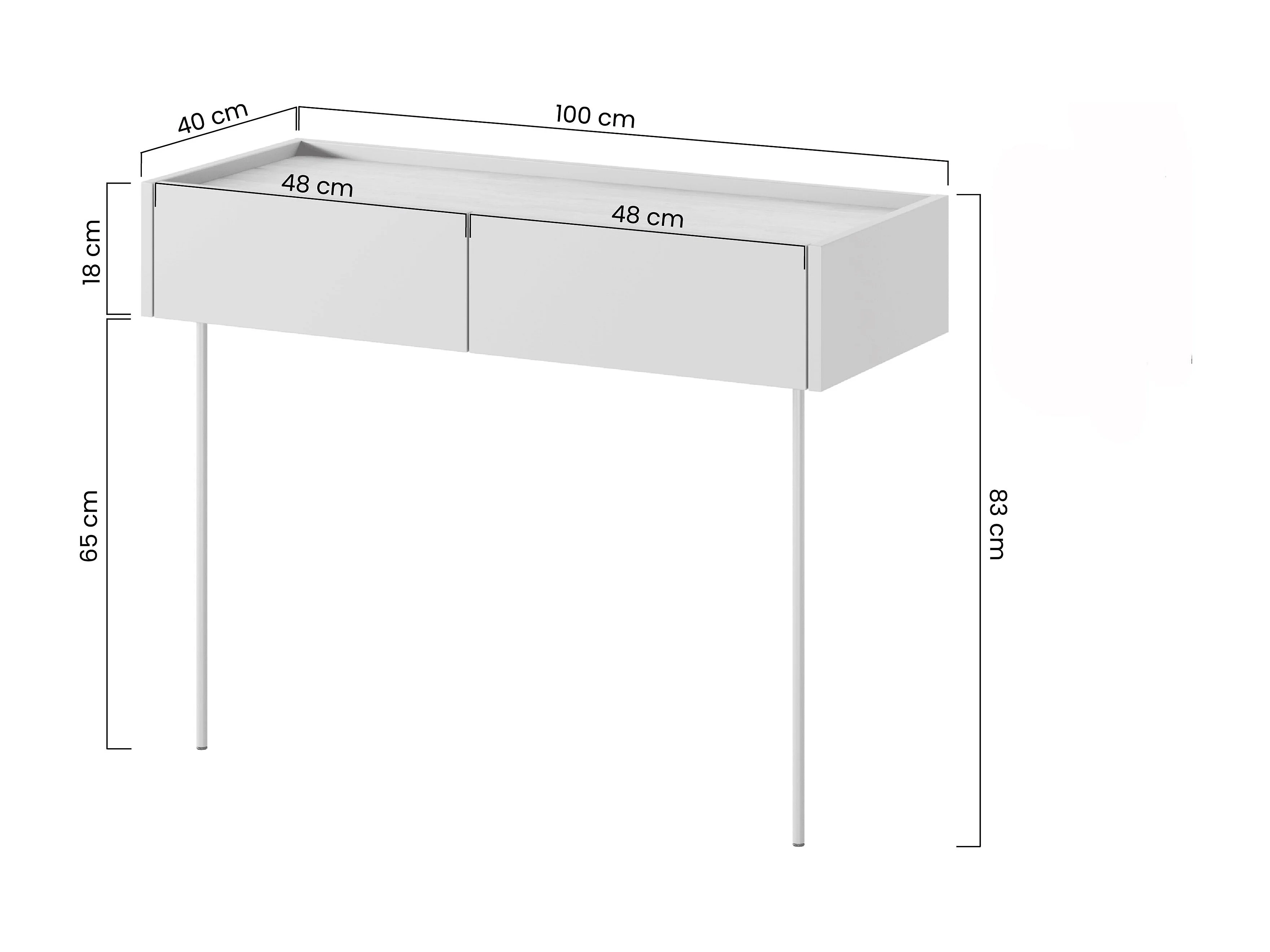 Mesa de console com 2 gavetas e pés pretos foscos, 103x80 cm