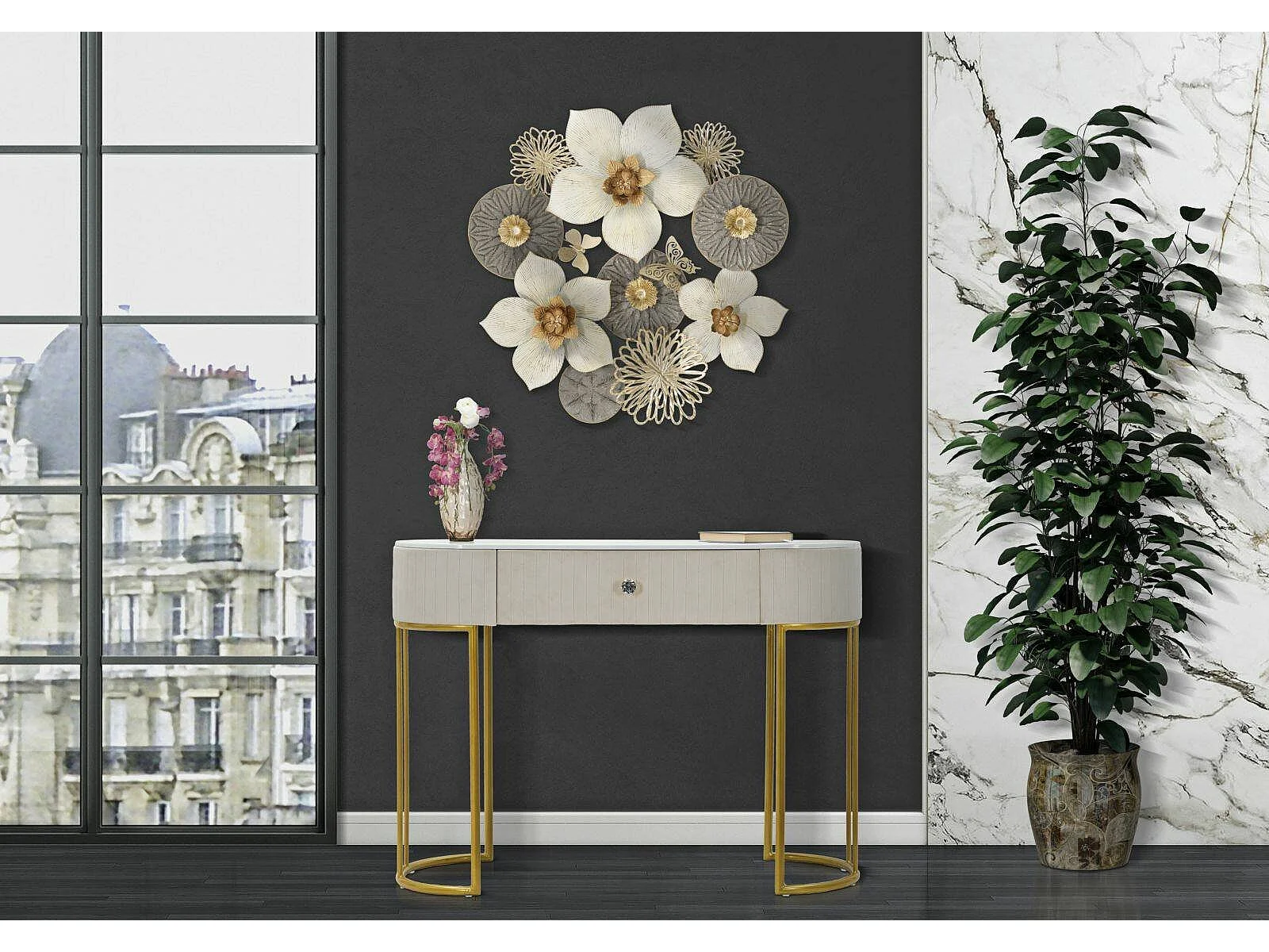 Consola Abstraktes, Mesa multiusos, Armário de apoio, Mesa de corredor, 100x40 h75 cm, Creme e Branco